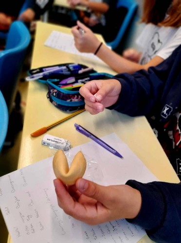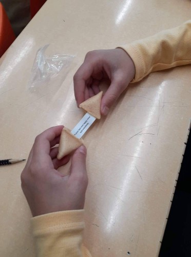 - Έλαβαν από ένα μπισκοτάκι της τύχης (fortune cookie) και μετέφρασαν την παροιμία που είχε μέσα
