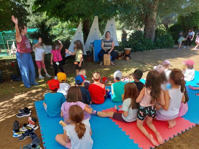 21 Ιουνίου 2022Τα παιδιά μας που συμμετέχουν στο English Summer Camp «The Wonders of Protypa» γιόρτασαν την Ευρωπαϊκή Ημέρα Μουσικής παίζοντας μουσικά όργανα με το ΚΡΟΥΣΤΟΦΩΝΟ-Εργαστήρι Κρουστών και τραγουδώντας μουσικές και τραγούδια απ’ όλες τις γωνιές του κόσμου. Βγάλαμε παπούτσια, καθίσαμε στο ειδικό στρώμα που είχε στηθεί κάτω απ’ το πελώριο πλάτανο της αυλής μας και υπό την σκιά του μάθαμε για τον κόσμο των κρουστών, για τους ήχους και τις μελωδίες τους, αλλά και για το σε ποιες χώρες επιλέγονται οι πιο γρήγοροι ή οι πιο αργοί σκοποί και γιατί. Το διασκεδάσαμε και φυσικά, αφήσαμε να μας συνεπάρει ο ρυθμός!