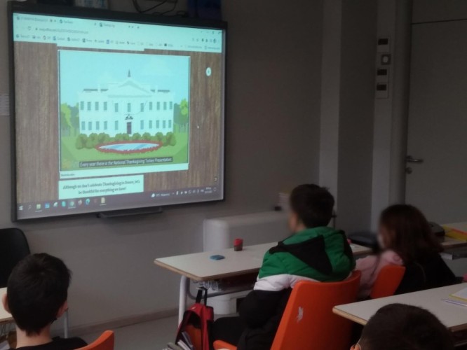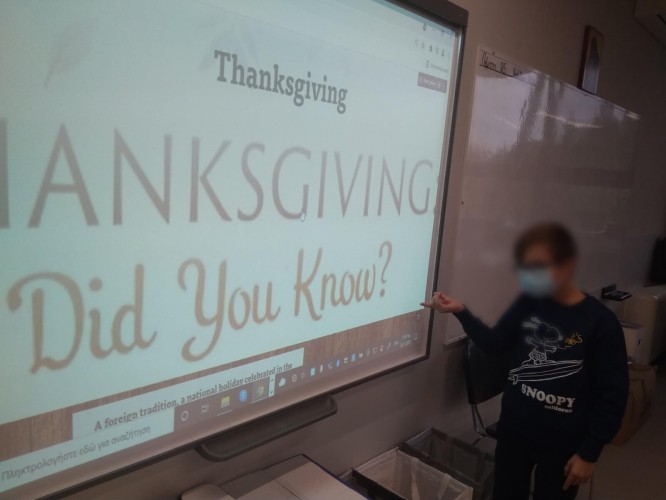 25 Νοεμβρίου 2021Σήμερα, οι καθηγήτριες των Αγγλικών μας γιόρτασαν τόσο στο νηπιαγωγείο όσο και στο Δημοτικό μας την Ημέρα των Ευχαριστιών. Τα παιδιά μας συζήτησαν για την παραδοσιακή αυτή γιορτή των Αμερικανών, κάποια τμήματα έκαναν χειροτεχνίες και ζωγραφιές, ενώ τα μεγαλύτερα μίλησαν με τις δασκάλες τους για τον θεσμό αυτό, καθώς και για το εθιμοτυπικό του! Γιατί, πέραν των γραμματικοσυντακτικών φαινομένων, αγαπάμε να μαθαίνουμε και την κουλτούρα των άλλων λαών.