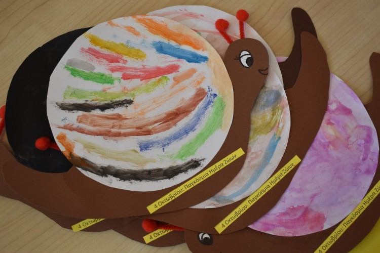 04 Οκτωβρίου 2021Με αφορμή την Παγκόσμια Ημέρα των Zώων όλες οι εκπαιδευτικές βαθμίδες του σχολείου μας συζήτησαν τη σημασία των πλασμάτων αυτών στη ζωή μας. Στον Παιδικό Σταθμό (Πρότυπα 2-4) τα μικρά μας παρακολούθησαν κουκλοθέατρο και κουβέντιασαν για τα αγαπημένα τους ζώα. Στο νηπιαγωγείο τα προνηπιάκια μας διάβασαν παραμύθι και δημιούργησαν «Κανόνες για τα δικαιώματα των ζώων», καθώς και μία χειροτεχνία μ’ ένα σαλιγκάρι. Η «Πούκι» και η «Βαλιάνα» ήταν δύο από τα λιοντάρια των τάξεων του νηπιαγωγείου, ενώ οι άλλες δύο τάξεις έπαιξαν με τα χελιδόνια πάνω στο χαρτί. Στο Δημοτικό οι μαθητές της Α’ και Β’ Τάξης με τη χρήση του διαδραστικού πίνακα μίλησαν τόσο για τα οικόσιτα κατοικίδια όσο και γι’ αυτά που βρίσκονται υπό εξαφάνιση, ενώ και αυτοί ζωγράφισαν το αγαπημένο τους ζωάκι.