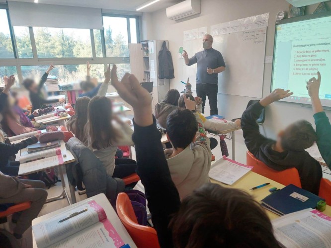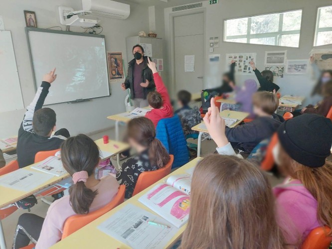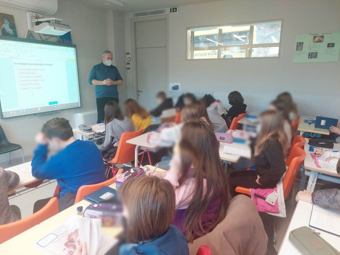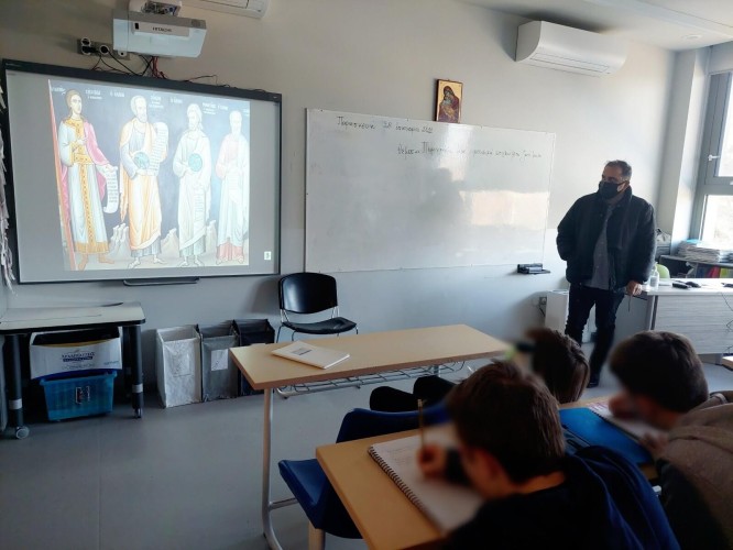 30 Ιανουαρίου 2022Τα παιδιά μας της Ε΄ και ΣΤ’ τάξης, απ΄ όπου και τα στιγμιότυπα, αλλά και όλες οι εκπαιδευτικές μας βαθμίδες τίμησαν την Παρασκευή το κάθε τμήμα στην τάξη του τους Τρεις Ιεράρχες. Τα παιδιά μας από τα πιο μικρά μέχρι τα πιο μεγάλα ενημερώθηκαν και συζήτησαν με τους δασκάλους τους για το έργο και τις δράσεις των Μεγίστων Φωστήρων. ‘Έμαθαν πώς ο Μέγας Βασίλειος, ο Γρηγόριος Θεολόγος και ο Ιωάννης Χρυσόστομος, με τις γνώσεις, αλλά κυρίως, με τον ανθρωπισμό τους μετέβαλαν ριζικά όχι μόνο τα θρησκευτικά, αλλά και τα εκπαιδευτικά ζητήματα.