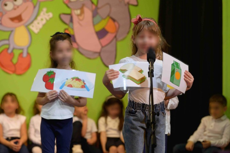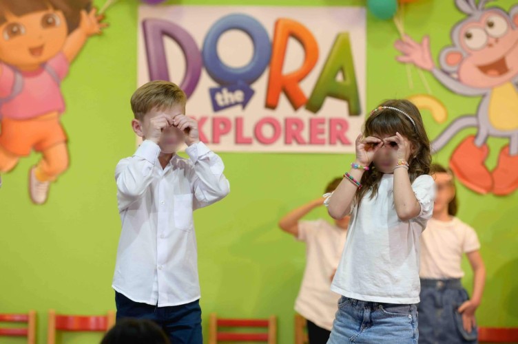 24 Απριλίου 2024Τα νηπιάκια μας όλη τη χρονιά μαθαίνουν γράμματα, λέξεις, προτάσεις και τραγούδια στα αγγλικά. Ένα μεγάλο κομμάτι από τις γνώσεις τους είχαν την ευκαιρία να δείξουν στη γιορτή γλωσσομάθειας που πραγματοποιήθηκε τη Δευτέρα 15 Απριλίου. Στην παράσταση «Dora the explorer», βασισμένη στο ομώνυμο βιβλίο, οι μικροί μας μαθητές, η Dora και ο Boots εξερεύνησαν τον κόσμο επί σκηνής. Με διασκεδαστικούς διαλόγους, χορευτικές κινήσεις, χαμόγελα και αυθορμητισμό τα παιδιά μας εντυπωσίασαν τους γονείς και τις νηπιαγωγούς τους. “We speak English, too…!!”, αναφώνησαν στο τέλος και δέχτηκαν το πιο θερμό χειροκρότημα.