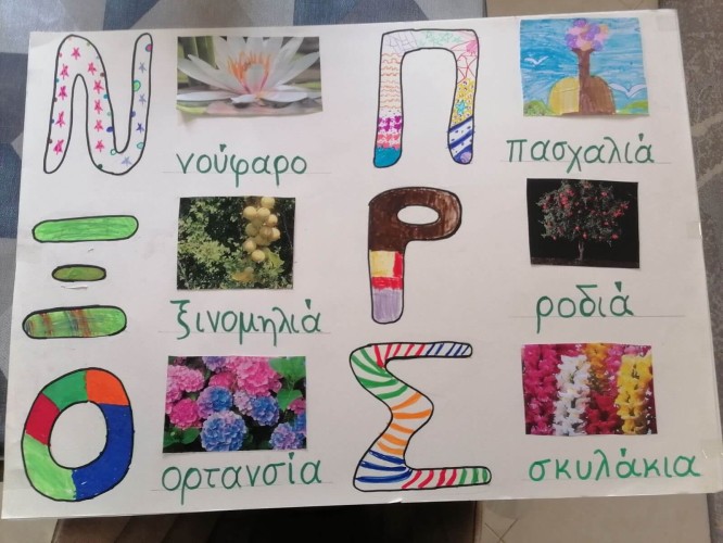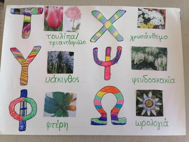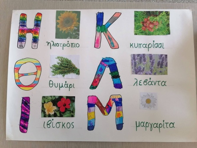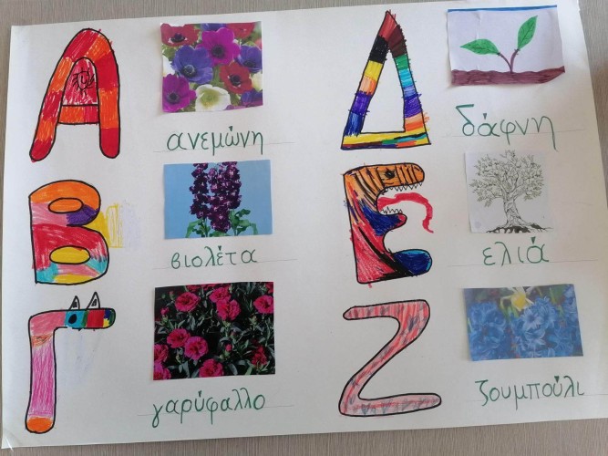 Τέλος, έφτιαξαν το «Εικονογραφημένο Λεξικό των Φυτών». Ζωγράφισαν ομαδικά τα 24 γράμματα σε μία κοινή εικαστική δράση. Κάθε γράμμα αντιστοιχούσε σε ένα φυτό (π.χ. Α – ανεμώνη κτλ.). Έτσι, το κάθε παιδί ανέλαβε από ένα γράμμα και άρα από ένα φυτό, το οποίο το παρουσίασε στην ολομέλεια της τάξης, κολλώντας παράλληλα την αντίστοιχη φωτογραφία του φυτού του.