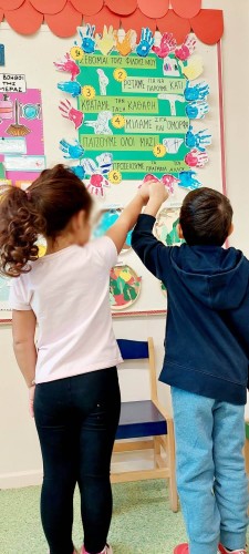 Η φιλία είναι μια διαδικασία που απαιτεί χρόνο, επιμονή και υπομονή, εμπιστοσύνη, νοιάξιμο, συζήτηση και πολλά ακόμη στοιχεία. Τα χαρακτηριστικά αυτά που είναι αναγκαία για τη δημιουργία ουσιαστικών σχέσεων μεταξύ των ατόμων διδάσκονται καθημερινά στα παιδιά μας από την προνηπιακή ηλικία. Έτσι, αυτήν την εβδομάδα τα προνηπιάκια μας στο πλαίσιο της θεματικής τους «Με τους φίλους μου παρέα» πραγματοποίησαν μία σειρά από δράσεις που είχαν ως στόχο να καλλιεργήσουν τη φιλιά, την αγάπη και το ενδιαφέρον μεταξύ των μαθητών μας.