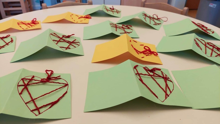 - Δημιουργήσαμε κάρτες με μια χειροποίητη πλεκτή καρδιά και κάναμε ανταλλαγή
