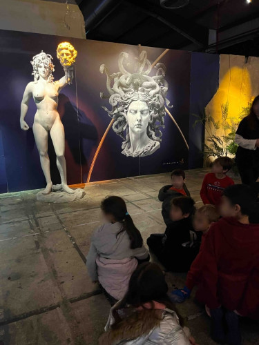 09 Δεκεμβρίου 2025Στο πλαίσιο του μαθήματος της ιστορίας οι μαθητές της Γ΄ και Δ΄ τάξης επισκέφθηκαν το διαδραστικό θεματικό πάρκο «Αρχαία Ελλάδα» στη ΔΕΘ και έκαναν ένα «ταξίδι» στο μακρινό παρελθόν. Από την αρχαία Αθήνα και τις Θερμοπύλες στην Σπάρτη βρέθηκαν στη Μακεδονία και την Τροία μαθαίνοντας τη σπουδαιότητα του αρχαίου ελληνικού πολιτισμού και της μυθολογίας. Στη συνέχεια, τα παιδιά θαύμασαν τα εντυπωσιακά αγάλματα θεών, μυθικών πλασμάτων και ηρώων της εποχής που «ζωντάνεψαν» μπροστά στα έκπληκτα μάτια τους. Με τη βοήθεια εφαρμογών ΑΙ είδαν αρχαίους φιλόσοφους να τους μιλούν για τη ζωή και τα επιτεύγματά τους.
