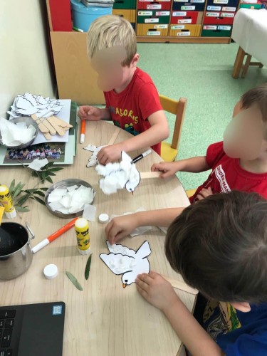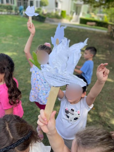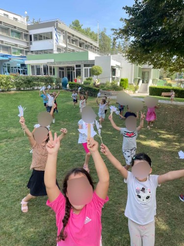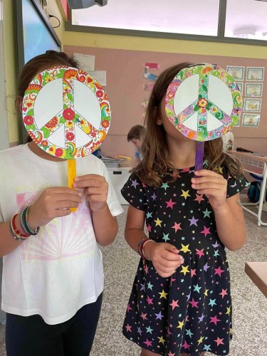 Η αφήγηση του "Σπόρου της Ειρήνης" του Αριστοφάνη που έγινε από τη Β' τάξη, οι χειροτεχνίες και τα τραγούδια από τα νηπιάκια μας, ήταν μερικοί μονο απο τους τρόπους που αξιοποιήσαμε για να εξοικειώσουμε τα παιδιά μας με την πανανθρώπινη αυτή αξία.