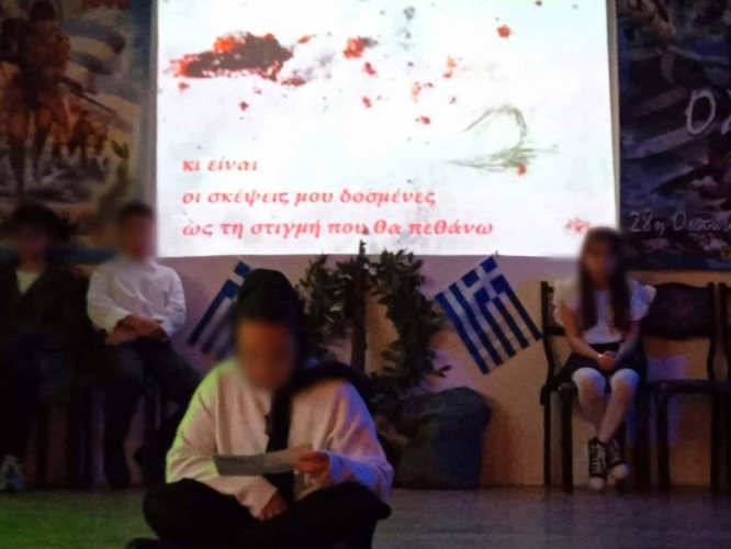 27 Οκτωβρίου 2022Τα παιδιά μας της Ε’ Τάξης ανέβασαν χθες στον πολυχώρο του Σχολείου μας μία άκρως συγκινητική επετειακή παράσταση με θέμα τις «Μνήμες και τα βιώματα των αγωνιστών του μετώπου του ΄40».
