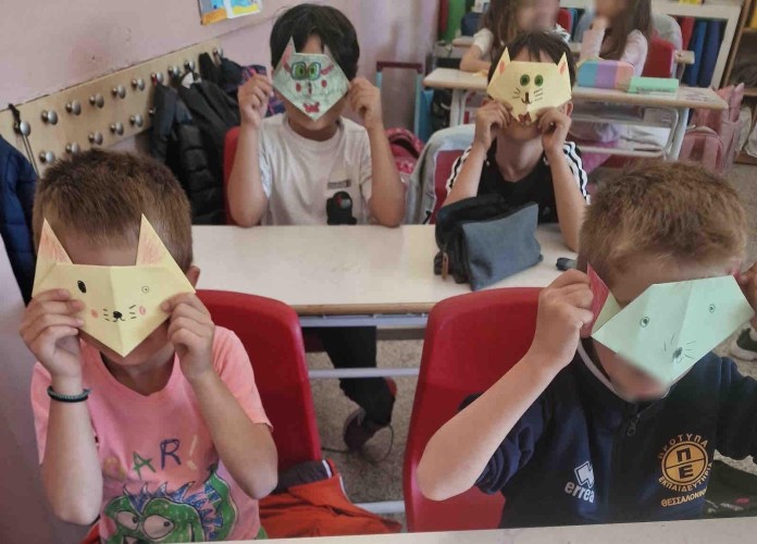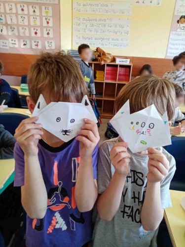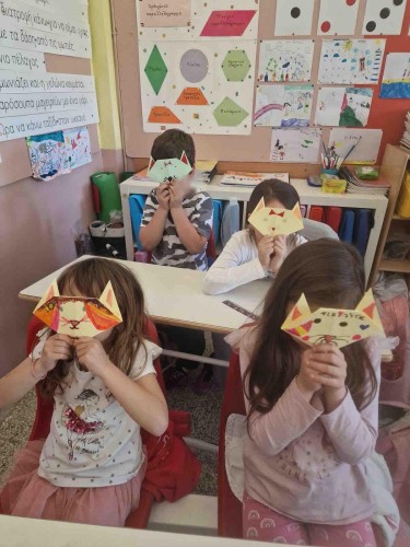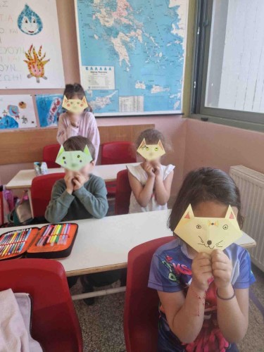 04 Απριλίου 2024Στο πλαίσιο της Πανελλήνιας Σχολικής Ημέρας Φιλοζωίας, την Πέμπτη 4 Απριλίου τα παιδιά μας της Α΄ τάξης συζήτησαν για τη φροντίδα που οφείλουμε να δείχνουμε σε όλα τα ζώα, καθώς και για την ευθύνη που αναλαμβάνουμε όταν αποφασίζουμε να υιοθετήσουμε ένα κατοικίδιο. Το κάθε παιδί έφτιαξε τη δική του γατούλα με την τεχνική του origami και στη συνέχεια οι μαθητές μας δημιουργώντας ομάδες έπαιξαν παντομίμα μιμούμενοι το αγαπημένο τους ζώο.