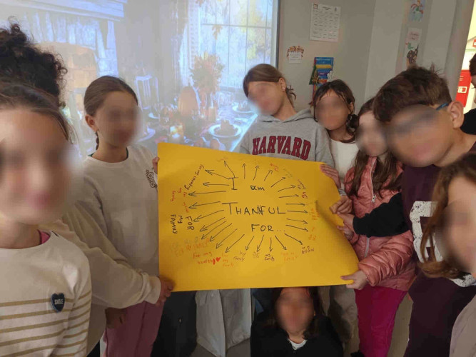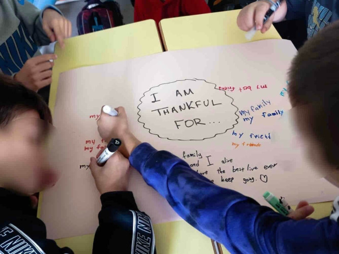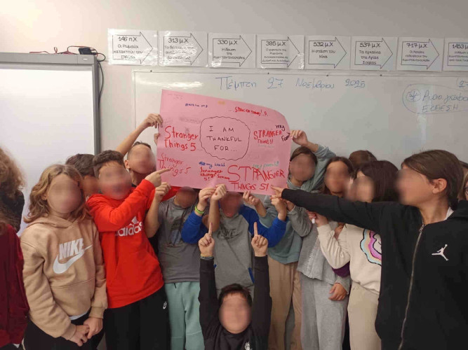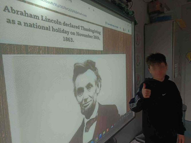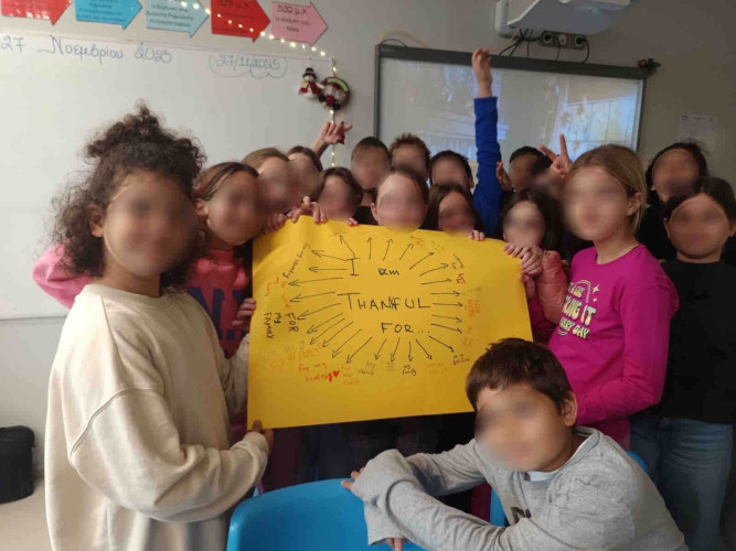 27 Νοεμβρίου 2025Γνωρίζετε ότι ο Αβραάμ Λίνκολν ήταν αυτός που το 1863 ανακήρυξε την ημέρα των Ευχαριστηριών εθνική γιορτή; Οι μαθητές μας της Ε΄ τάξης στο μάθημα των Αγγλικών γιόρτασαν σήμερα την ημέρα και έμαθαν πληροφορίες για την προέλευση και την ιστορία της. Μέσα από την οn-line ενότητας "Fun facts" έμαθαν για τα ήθη και τα έθιμα που ακολουθούν οι υπόλοιπες χώρες του εξωτερικού. Στη συνέχεια, σε ένα χαρτόνι με τίτλο “I am thankful for…” οι μαθητές έγραψαν λόγους για τους οποίους νιώθουν ευγνώμονες και ευχήθηκαν “Happy Thanksgiving!”