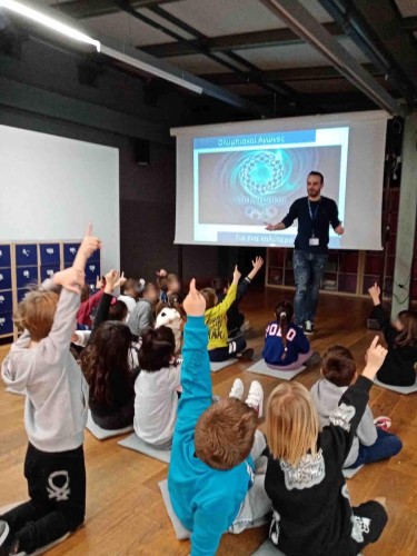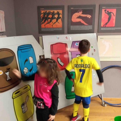 31 Ιανουαρίου 2024Οι μαθητές και οι μαθήτριες της Α΄ τάξης, ανά τμήματα, τον Ιανουάριο επισκέφθηκαν το Ολυμπιακό Μουσείο Θεσσαλονίκης, στο πλαίσιο του εργαστηρίου δεξιοτήτων «Φροντίζω το Περιβάλλον», όπου παρακολούθησαν το εκπαιδευτικό πρόγραμμα «Η ανακύκλωση γίνεται παιχνίδι». Τα παιδιά μας πήραν μέρος σε δράσεις που αφορούν την προστασία του περιβάλλοντος, την ανακύκλωση, την επαναχρησιμοποίηση υλικών και ανακάλυψαν τρόπους, για να δημιουργήσουμε μια αειφόρο κοινωνία, έχοντας ως έμπνευση το παράδειγμα των Ολυμπιακών Αγώνων. Στο τέλος του προγράμματος είχαν την ευκαιρία να παίξουν ένα διαδραστικό παιχνίδι, προσπαθώντας να διαχωρίσουν και να βάλουν στους σωστούς κάδους ποικίλα ανακυκλώσιμα υλικά. Μέσα από τη βιωματική τους εμπειρία εμπλούτισαν τις γνώσεις τους και ανακάλυψαν τη σπουδαιότητα της φροντίδας του πλανήτη.