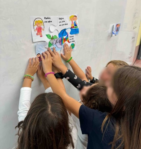 Αυτές και άλλες πολλές ήταν οι σκέψεις και τα συναισθήματα των μαθητών της Β΄ τάξης με αφορμή την Παγκόσμια Ημέρα Ειρήνης το Σάββατο 21 Σεπτεμβρίου. Στην προσπάθειά τους να σκεφτούν τι δε θα μπορούσαν να κάνουν, εάν ζούσαν σε μία χώρα με πόλεμο, τα παιδιά μας αναγνώρισαν τη χαρά που τους δίνουν απλές συνήθειες της καθημερινότητάς τους, τις οποίες δε θα ήταν τόσο εύκολο να έχουν, εάν δεν υπήρχε ειρήνη. Με αυτόν τον τρόπο προσέγγισαν τη σημασία αυτής της αξίας στη ζωή τους ή αλλιώς «χαρά και ευχαρίστηση», όπως την ονόμασαν οι ίδιοι! Τέλος, κατασκεύασαν το «Παζλ της ειρήνης», θέλοντας να περάσουν ένα όμορφο και ελπιδοφόρο μήνυμα, ώστε όλοι οι άνθρωποι πάνω σε αυτή τη γη να ζούμε ειρινικά!