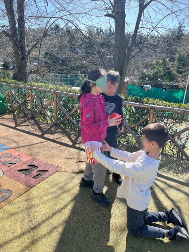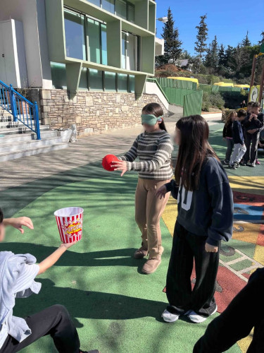 20 Φεβρουαρίου 2026Οι μαθητές της Δ΄ τάξης συμμετείχαν σε μια βιωματική δραστηριότητα εμπιστοσύνης. Χωρισμένα σε ζευγάρια τα παιδιά είχαν στόχο να ολοκληρώσουν με επιτυχία το «παιχνίδι της εμπιστοσύνης». Το ένα παιδί είχε καλυμμένα τα μάτια του ώστε να μη βλέπει τίποτα, ενώ το άλλο το καθοδηγούσε προσεκτικά στον χώρο της αυλής προσέχοντας να μην χτυπήσει. Ο ένας έπρεπε να εμπιστευτεί τον άλλον και μαζί να φτάσουν στο τέλος της διαδρομής και να βάλουν την μπάλα στο καλάθι. Μέσα από αυτή τη δράση καλλιέργησαν τη ενσυναίσθηση τους κατανοώντας πως στη ζωή πετυχαίνεις τους στόχους σου όταν συνεργάζεσαι και βοηθάς τους άλλους.