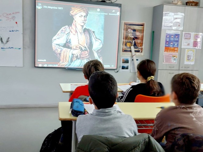 29 Μαρτίου 2022Τα παιδιά μας της Ε’ Τάξης τίμησαν την εθνική μας επέτειο, 25η Μαρτίου, συζητώντας με τους δασκάλους τους για τα γεγονότα και την αυτοθυσία των ηρώων της ελληνικής επανάστασης. Στο πλαίσιο των εορτασμών, παρακολούθησαν στον διαδραστικό πίνακα της τάξης τους σχετικά επετειακά βίντεο, άκουσαν παραδοσιακά τραγούδια και χόρεψαν κατά ομάδες.Τέλος, τα κορίτσια του τμημάτων δραματοποίησαν τον χορό του Ζαλόγγου, αφού προηγουμένως είχαν ακούσει την ιστορία για τη θυσία των περήφανων γυναικών από το Σούλι. Χρόνια πολλά από τους μαθητές μας της Ε’ Τάξης!