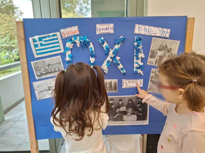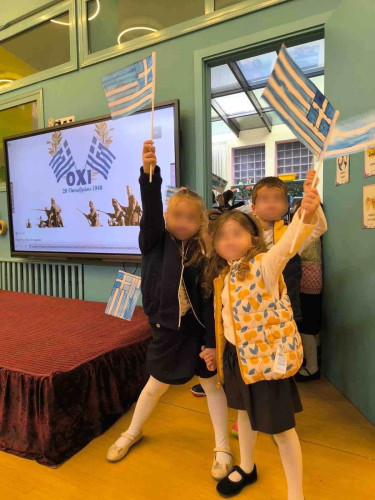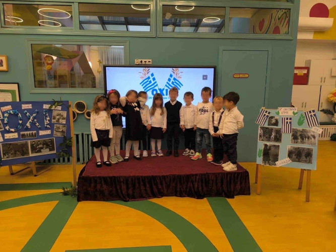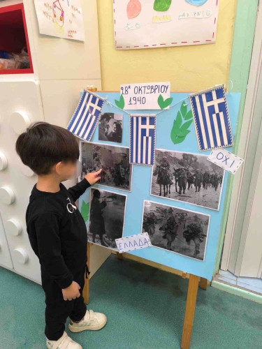 24 Οκτωβρίου 2025Οι μαθητές μας του Νηπιαγωγείου γιόρτασαν την επέτειο της 28ης Οκτωβρίου μαθαίνοντας για τα σημαντικά γεγονότα της ιστορίας και για τις αξίες της αυτοθυσίας και της αλληλεγγύης. Μέσα από συζήτηση, φωτογραφικό υλικό και δημιουργικές δραστηριότητες κατανόησαν τον θαρραλέο αγώνα των Ελλήνων που πάλεψαν για την ελευθερία. Ακόμα, ζωγράφισαν την ελληνική σημαία, δημιούργησαν τα περιστέρια της ειρήνης και συμμετείχαν σε θεατρικά δρώμενα και τραγούδια στη γιορτή που πραγματοποιήθηκε. Η ημέρα ολοκληρώθηκε με μια μικρή παρέλαση στο Σχολείο μας που ήταν γεμάτη χαμόγελα και περηφάνια.