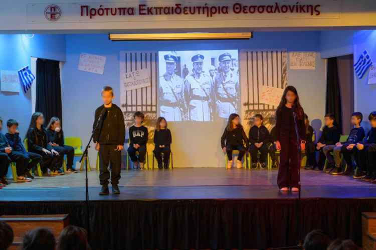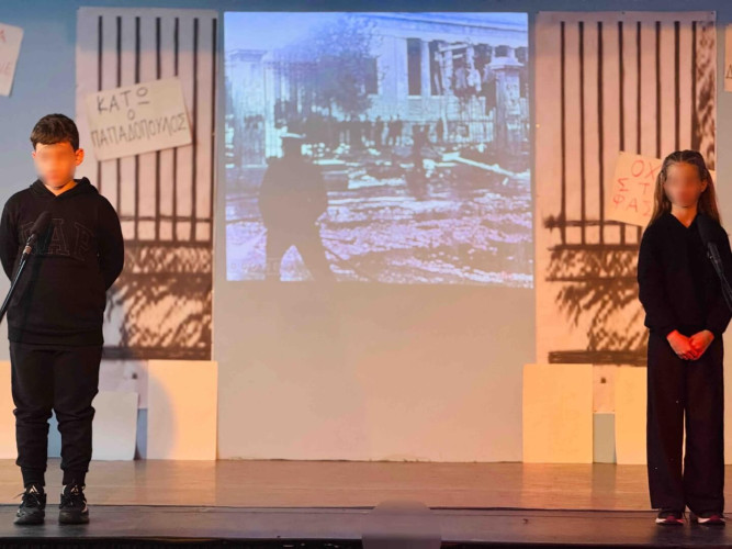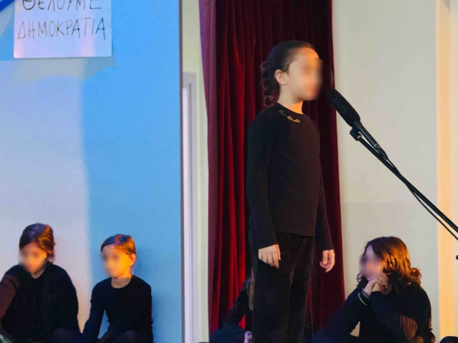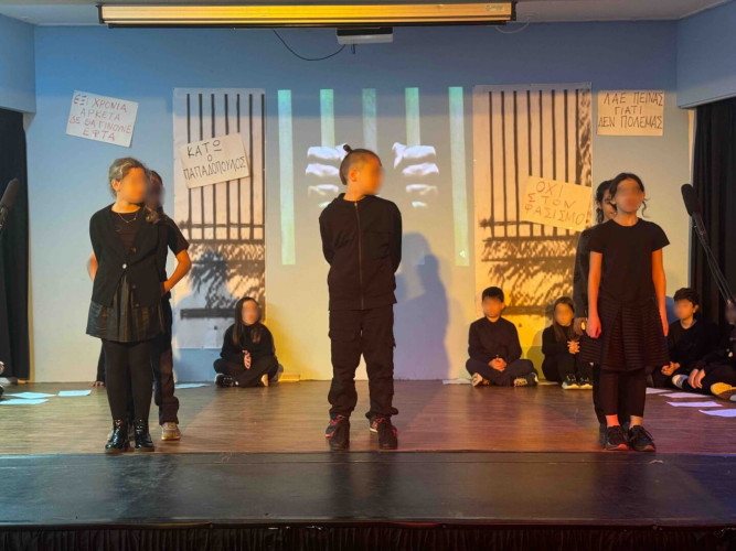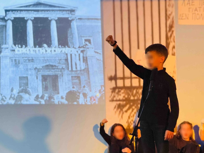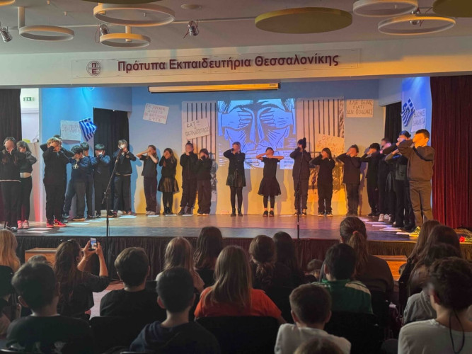 17 Νοεμβρίου 2025Σήμερα είναι η επέτειος μιας από τις πιο σημαντικές στιγμές της σύγχρονης ελληνικής ιστορίας, της εξέγερσης του Πολυτεχνείου στις 17 Νοεμβρίου. Οι μαθητές μας της Δ΄ τάξης σήκωσαν τα πανό τους και «φώναξαν» «Ψωμί – Παιδεία – Ελευθερία» (το κυρίαρχο σύνθημα των γεγονότων) τιμώντας τους φοιτητές που ύψωσαν το ανάστημα τους απέναντι στη δικτατορία. Τα παιδιά μας με τραγούδια, αφηγήσεις και ποιήματα αναβίωσαν εκείνες τις κρίσιμες ώρες μέσα και έξω από το Πολυτεχνείο το 1973. Η αντίσταση στην χούντα ήταν έρωτας για τη ζωή και τη δημοκρατία και με τους αγώνες των νέων ακούστηκε η ελπίδα ενός ολόκληρου λαού. Το Πολυτεχνείο ζει μέσα μας και είναι το σύμβολο για να μας υπενθυμίζει ότι χρειάζεται να φροντίζουμε και να υπερασπιζόμαστε τα ιδανικά μας.
