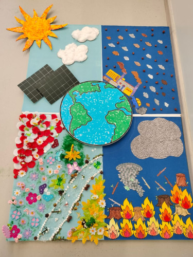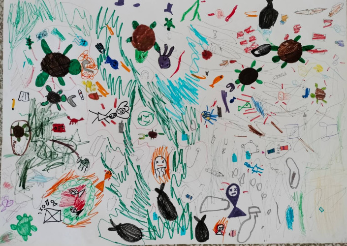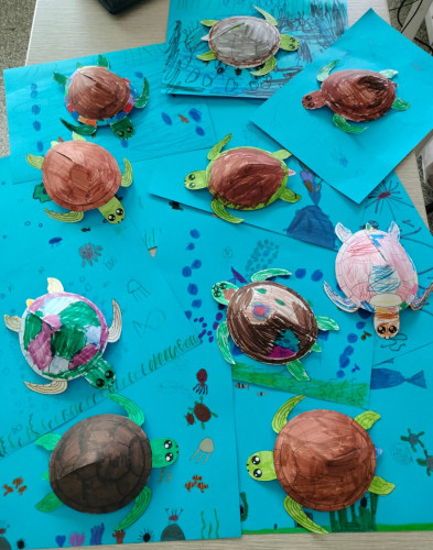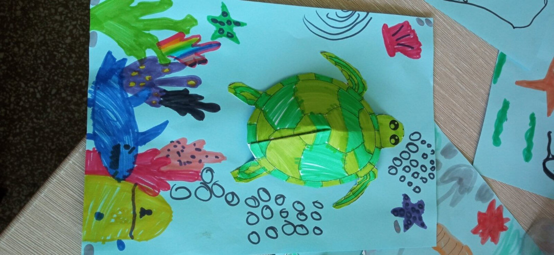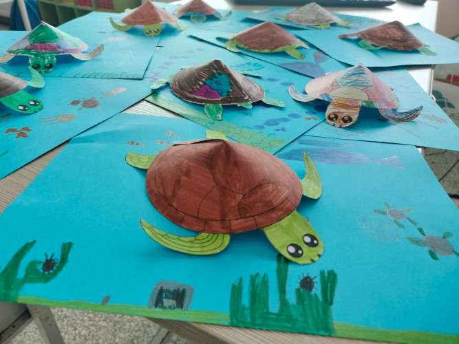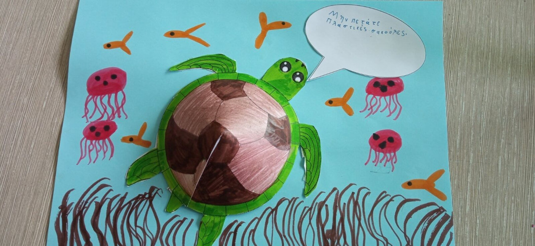 06 Ιουνίου 2025Στο πλαίσιο του 3ου Εργαστηρίου Δεξιοτήτων «Οικολογική Συνείδηση» της θεματικής ενότητας«Περιβάλλον… είσαι για όλους!» οι μαθητές της Α’ τάξης ενημερώθηκαν αναλυτικά για τα θαλάσσια ύδατα. Συγκεκριμένα, μίλησαν για την προστασία της θαλάσσιας χελώνας, έμαθαν τις αιτίες μόλυνσης των θαλασσών και πληροφορήθηκαν για τους κινδύνους που εγκυμονούν τόσο για τη χελώνα Καρέττα Καρέττα όσο για ολόκληρο το θαλάσσιο οικοσύστημα. Στη συνέχεια, κατασκεύασαν τις δικές τους τρισδιάστατες χελώνες καιέφτιαξαν έναν βρόμικο βυθό και ένα καθαρό θαλάσσιο περιβάλλον κατανοώντας έτσι με βιωματικό τρόπο όσα άκουσαν. Ακόμα, συζήτησαν για το πόσο απαραίτητη είναι η προστασία των δασών και έπειτα γνώρισαν τα μέρη των φυτών και τι χρειάζονται για να αναπτυχθούν. Οι «λουλουδένιες ταμπέλες» που φιλοτέχνησαν με τα πιο «πράσινα» συνθήματα για το περιβάλλονδιακόσμησαν τα καταπράσινα παρτέρια της αυλής μας.