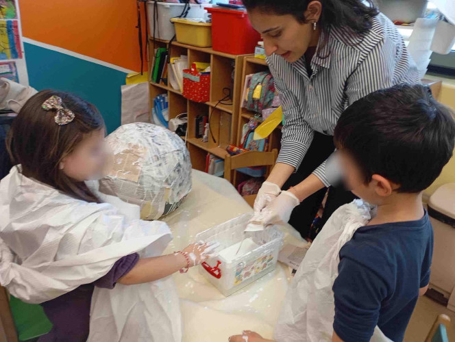 20 Μαρτίου 2025Η «Φύση μας Καλεί… σε Δράση» και τα νηπιάκια μας ανέπτυξαν την περιβαλλοντικής τους συνείδηση συμμετέχοντας ενεργά σε ένα σύνολο ποικίλων δραστηριοτήτων για την προστασία του πλανήτη. Κατά τη διάρκεια της θεματικής ενότητας απόλαυσαν μια κουκλοθεατρική παράσταση που τα ενέπνευσε και έχοντας συντροφιά τους πρωταγωνιστές της «Λάλο Παπαγάλο» και «Ρένο Σκατζοχοιρένιο» δημιούργησαν ένα διάγραμμα. Σε αυτό κατέγραψαν τις γνώσεις αλλά και τις απορίες τους για τους κινδύνους που απειλούν τα δάση. Έπειτα, πραγματοποίησαν ένα πείραμα και με βάση αυτά που παρατήρησαν κατέληξαν πως τα δάση στέκονται σαν ασπίδα ώστε να διαφυλάξουν τα σπίτια μας από τους δυνατούς ανέμους. Με διαδραστικό τρόπο τα παιδιά μας έμαθαν για τη σωστή διαλογή των ανακυκλώσιμων υλικών και αφού παρακολούθησαν ένα εκπαιδευτικό βίντεο για τον θαλάσσιο κόσμο συνέταξαν έναν πίνακα αναφοράς με εικόνες και ονομασίες από όλα τα πλάσματα του βυθού. Ποιες είναι οι ανθρώπινες συμπεριφορές που επιβαρύνουν το οικοσύστημα; «Σώστε τη γη» είπαν στο τέλος οι μαθητές μας φιλοτεχνώντας τρισδιάστατα έργα τέχνης από ανακυκλώσιμα υλικά χρησιμοποιώντας τις τεχνικές papier-mache και land art.