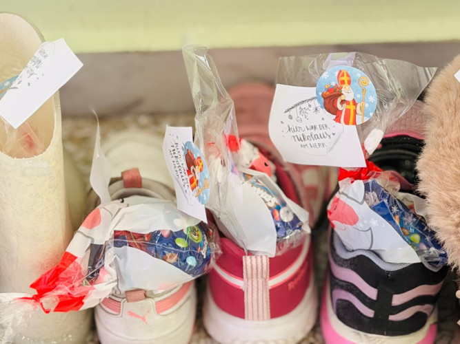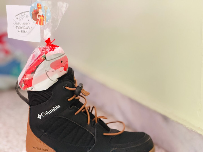 Πριν αρχίσει το μάθημα τα παιδιά, ακολουθώντας το γερμανικό έθιμο, άφησαν τα παπούτσια τους έξω από την τάξη. Όπως κάθε χρόνο, ο Nikolaus «πέρασε κρυφά» και τα γέμισε με γλυκά και μικρές λιχουδιές— μια γλυκιά επιβράβευση για την προσπάθεια, τη συνεργασία και την καλοσύνη που δείχνουν όλη τη διάρκεια της χρονιάς. - Alle unsere Kinder waren sehr brav!