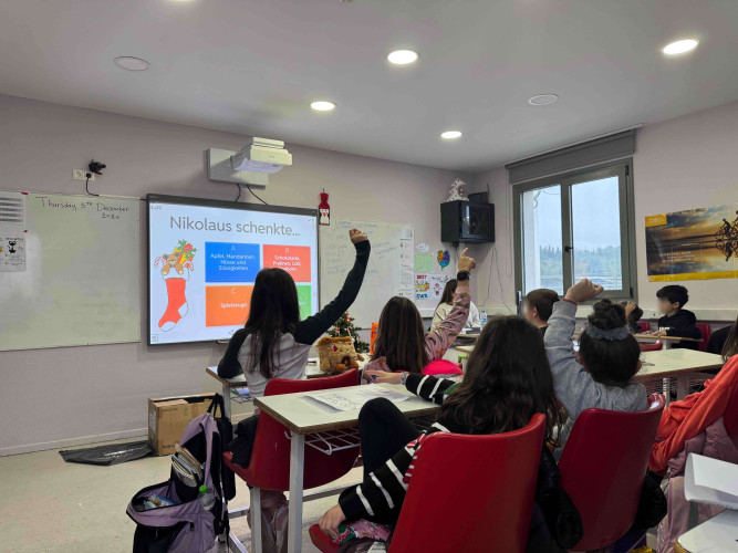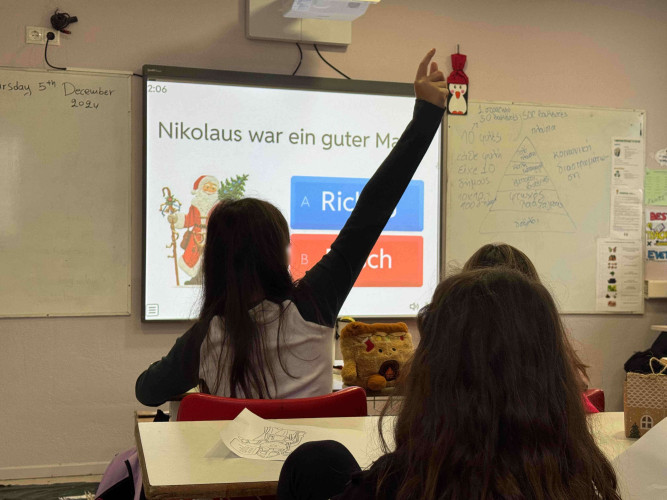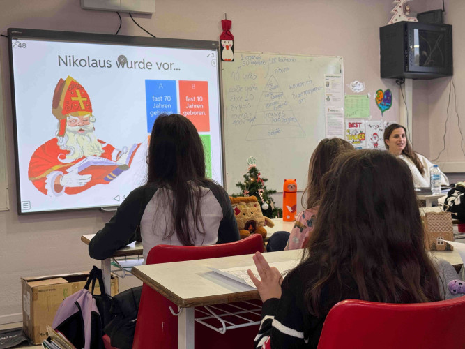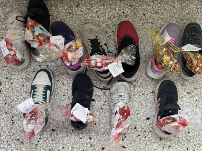 06 Δεκεμβρίου 2024Οι μαθητές των Γερμανικών των Α΄, Β΄ και Δ΄ τάξεων γιόρτασαν την Παρασκευή 6 Δεκεμβρίου την ημέρα του Αγίου Νικολάου και γνώρισαν τη γερμανική παράδοση και τα ξεχωριστά έθιμά της. Κατά τη διάρκεια του μαθήματος τα παιδιά συζήτησαν με τις καθηγήτριές τους για τον βίο και το έργο του Heiliger Nikolaus, έναν γενναιόδωρο και δίκαιο επίσκοπο που βοηθούσε όσους είχαν ανάγκη και έγινε σύμβολο καλοσύνης και αγάπης. Ο Nikolaus, σύμφωνα με το έθιμο, «ήρθε κρυφά» και άφησε ως δώρο στα παπούτσια τους γλυκά και λιχουδιές, ανταμείβοντας τα καλά παιδιά της χρονιάς.