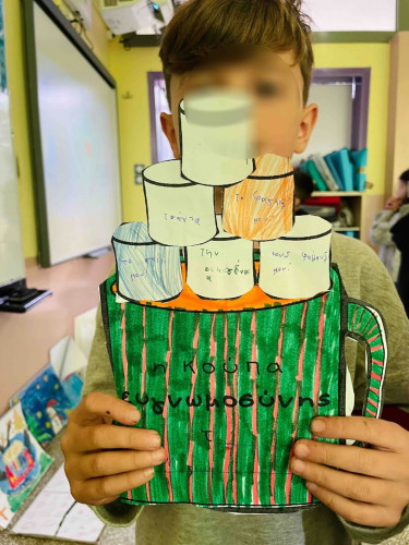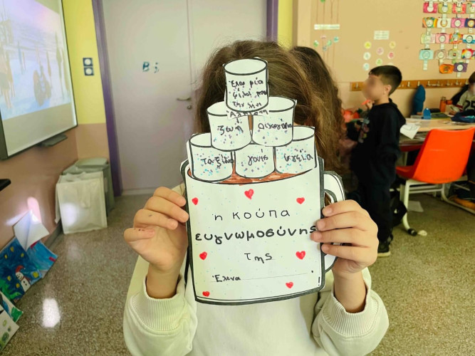 14 Ιανουαρίου 2026Τη μοναδική δική τους «κούπα της ευγνωμοσύνης» έφτιαξαν οι μαθητές μας της Β΄τάξης εκφράζοντας όσα τους έρχονται στο μυαλό για τη χρονιά που αφήσαμε πίσω μας. Μια «ζεστή σοκολάτα» γεμάτη λέξεις και συναισθήματα, στην οποία έγραψαν όλα εκείνα για τα οποία νιώθουν ευγνωμοσύνη: την οικογένεια, τους φίλους, την υγεία, την αγάπη και τις μικρές χαρές της καθημερινότητας. Βιωματικά έμαθαν τι σημαίνει ευγνωμοσύνη και είπαν ένα μεγάλο ευχαριστώ για όσα συχνά θεωρούμε δεδομένα, αλλά τελικά αν το σκεφτούμε για κάποιους δεν είναι. Γιατί οι γιορτές δεν είναι μόνο δώρα, αλλά και καρδιές γεμάτες αγάπη.