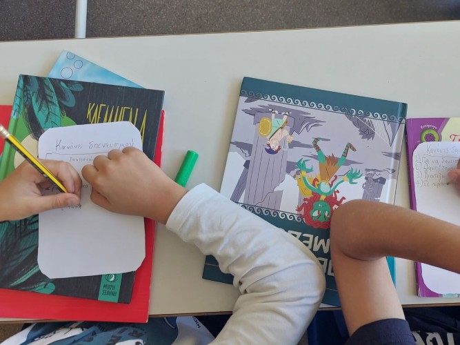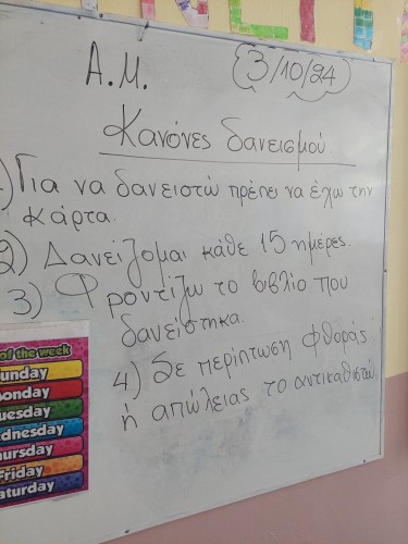 11 Οκτωβρίου 2024Το πρόγραμμα της Φιλαγνωσίας ξεκίνησε και τη φετινή χρονιά για τους μαθητές μας της Γ΄ τάξης με την οργάνωση του αντίστοιχου τμήματος. Το κάθε παιδί ανέλαβε να φέρει βιβλία από το σπίτι του τα οποία καταγράφηκαν και ταξινομήθηκαν στην ειδικά διαμορφωμένη γωνιά της αίθουσας. Στη συνέχεια οι μαθητές δημιούργησαν και φιλοτέχνησαν τις ατομικές κάρτες δανεισμού και ορίστηκε ο βιβλιοθηκάριος. Δανείστηκαν ήδη το πρώτο τους βιβλίο και αφού το διάβασαν το παρουσίασαν στους συμμαθητές τους υπογραμμίζοντας τα ιδιαίτερα στοιχεία που το χαρακτηρίζουν. Το πρόγραμμα της Φιλαναγνωσίας πραγματοποιείται κάθε χρόνο σε όλη τη διάρκεια της χρονιάς. Τα παιδιά εξασκούνται στον δανεισμό και τη λειτουργία μιας βιβλιοθήκης, καθώς τα οργανώνουν όλα μόνα τους. Με την ολοκλήρωση των εργασιών συμπληρώνουν κάθε φορά το «φύλλο της γνώσης» το οποίο στο τέλος της χρονιάς συνθέτει το «Δέντρο της γνώσης». Το πρόγραμμα ενισχύει τις αναγνωστικές δεξιότητες, την κριτική σκέψη ενώ προάγει τη συνεργασία και την ομαδικότητα.