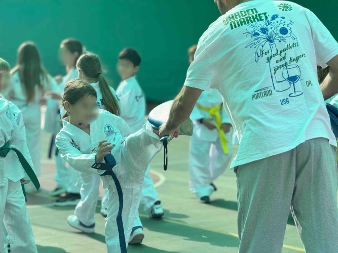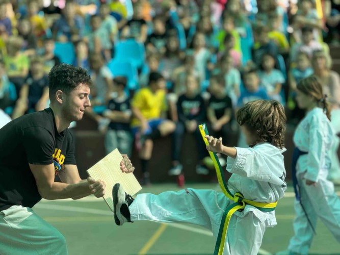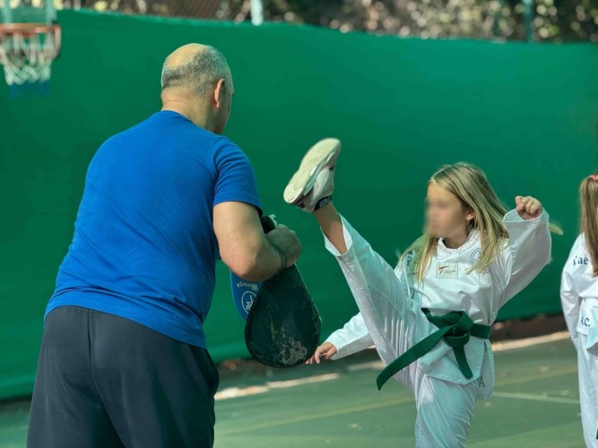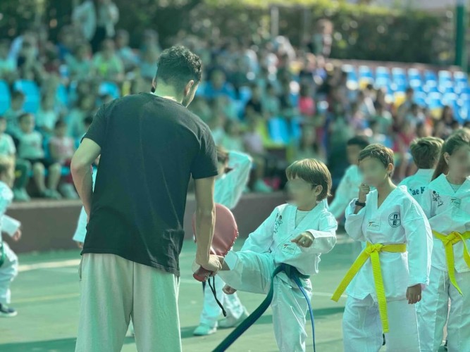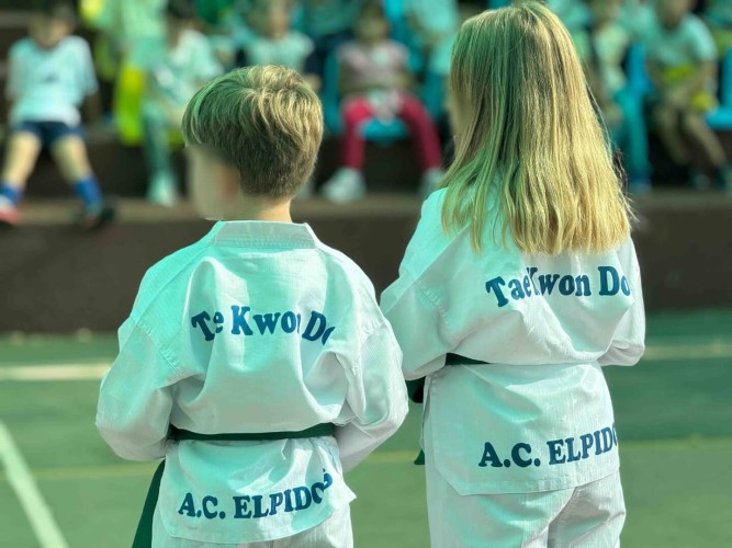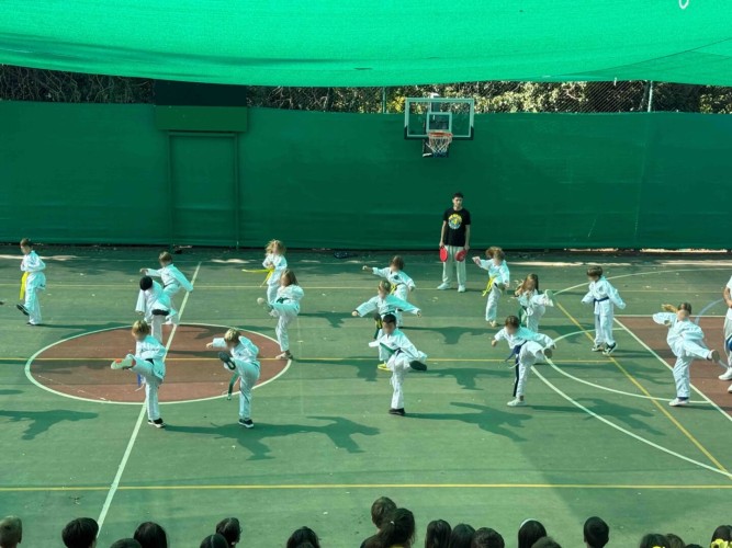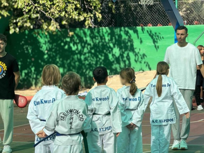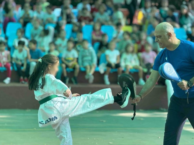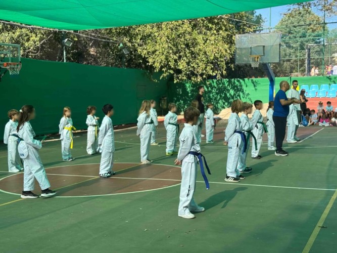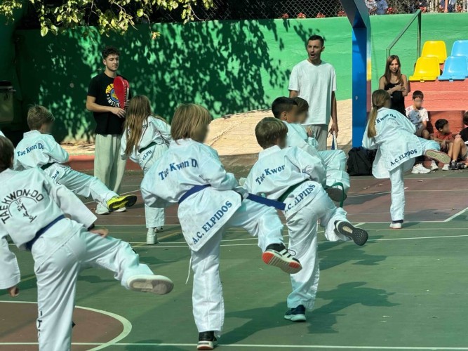 25 Σεπτεμβρίου 2024Το Τμήμα Δημιουργικής Απασχόλησης Tae Kwon Do του Σχολείου μας συστήθηκε στα παιδιά μας των Α΄, Β΄ και Γ΄ τάξεων την Τετάρτη 25 Σεπτεμβρίου. Η επίδειξη που έκαναν τα μέλη του τμήματος εντυπωσίασε τους συμμαθητές τους. Κατά τη διάρκειά της πραγματοποιήθηκε σειρά ασκήσεων κινησιολογίας, τεχνικές ποδιών και χεριών σε στόχους και θραύσεις ξύλων. Το Τae Kwon Do βελτιώνει τη σωματική διάπλαση, αναπτύσσει την αντίληψη του χώρου και ενισχύει τον απαιτούμενο συγχρονισμό των κινήσεων.