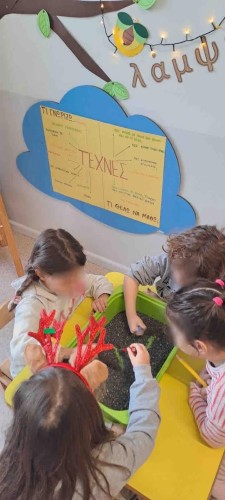 26 Φεβρουαρίου 2024Η πιο καλλιτεχνική εβδομάδα του χρόνου έφτασε! Τα προνηπιάκια μας είχαν την ευκαιρία να εξερευνήσουν τον κόσμο των τεχνών, ξεκινώντας με τη ζωγραφική και τη χαρακτική. Έπαιξαν με τα βασικά χρώματα, έκαναν μίξεις και δημιούργησαν καινούρια. Αναζήτησαν πληροφορίες από το διαδίκτυο και από βιβλία για διάσημους ζωγράφους και μέσα από τα έργα τους εμπνεύστηκαν και δημιούργησαν δικά τους. Διασκέδασαν μέσα από κινητικά παιχνίδια με χρωματιστά μαντίλια και δημιούργησαν έναν μουσικό πίνακα με χρώματα. Απόλαυσαν την κουκλοθεατρική παράσταση "Η διαμάχη των χρωμάτων" και στο τέλος ζωγράφισαν τη σβούρα τους για ατελείωτο παιχνίδι στο σπίτι.