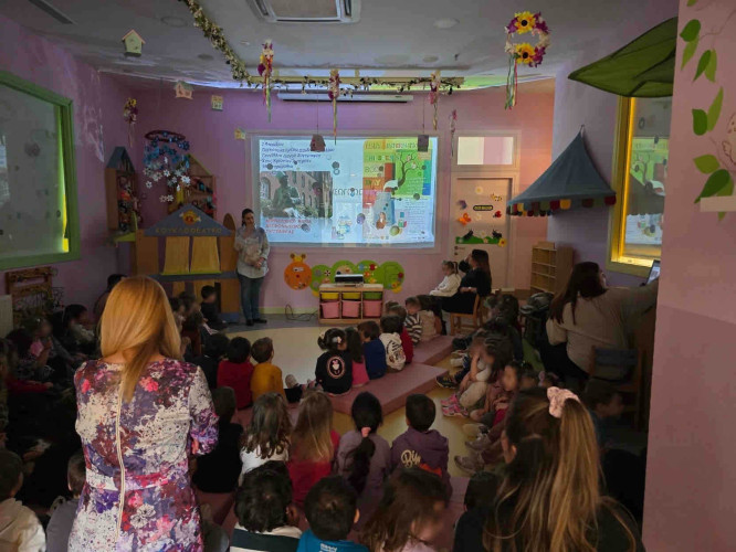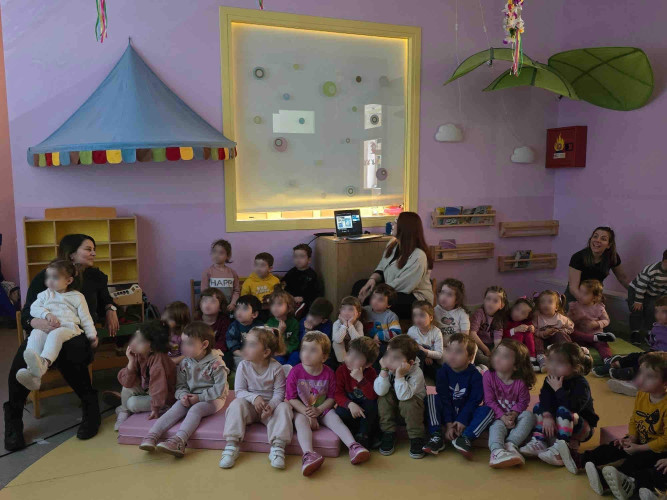 07 Απριλίου 2025Με οδηγό το βιβλίο «Μ’ ακούς» της κ. Μ. Μπραστιανού που γράφτηκε σε συνεργασία με το Ινστιτούτο Κητολογικών ερευνών «Πέλαγος», οι μαθητές μας του Παιδικού Σταθμού «Πρότυπα 2-4» έμαθαν για τη σημασία της προστασίας των θαλάσσιων οργανισμών και τον τρόπο με τον οποίο μπορούν οι ίδιοι να συμβάλλουν στη φροντίδα του περιβάλλοντος. Την Παρασκευή 4 Απριλίου κατά τη διάρκεια της παρουσίασης του βιβλίου στο Σχολείο μας, η συγγραφέας εξιστόρησε την περιπέτεια της μικρής Αγνής και του αδερφού της που αντιμετωπίζει προβλήματα ακοής. Μέσα από την αφήγησή της «γνώρισε» στα παιδιά τους φυσητήρες. Αυτά τα θαλάσσια κήτη που συναντούμε στις ελληνικές θάλασσες αντιμετωπίζουν πολλούς κινδύνους που απειλούν τη ζωή τους. Συχνά, εξαιτίας περιβαλλοντικών παραγόντων, οδηγούνται σε απώλεια ακοής, με αποτέλεσμα να χάνουν τον προσανατολισμό τους και να πέφτουν επάνω σε πλοία. Η ανάγκη για περιβαλλοντική ευαισθητοποίηση είναι απαραίτητη και οι μαθητές μας ως ενεργοί πολίτες του αύριο προετοιμάζονται κατάλληλα για αυτό.