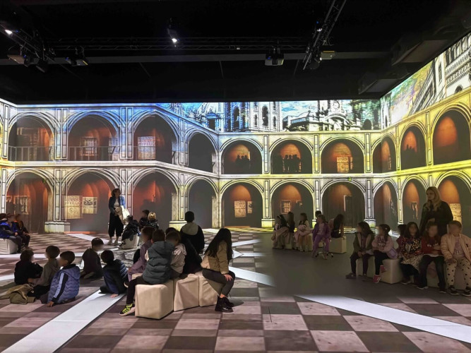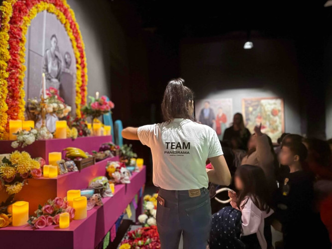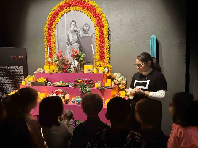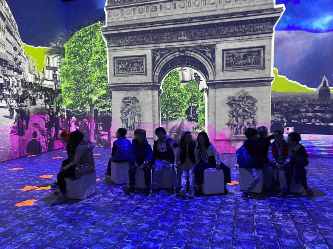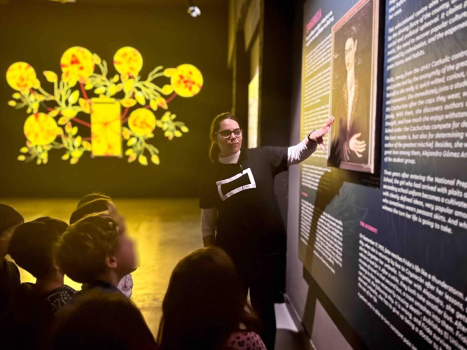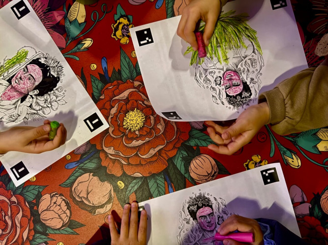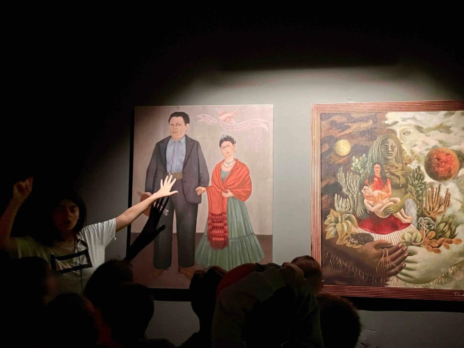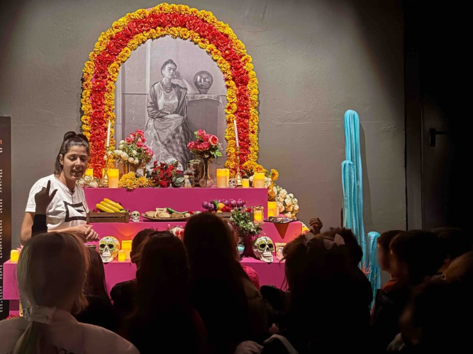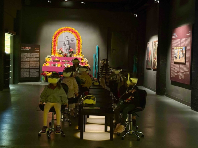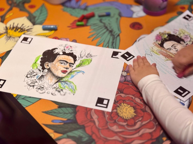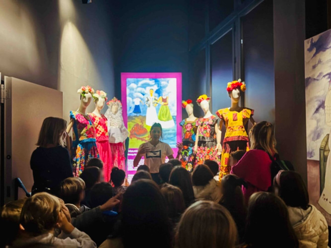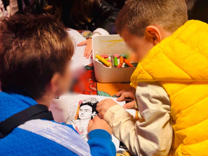 22 Οκτωβρίου 2025Την Τετάρτη 15, την Παρασκευή 17 και την Τετάρτη 22 Οκτωβρίου οι μαθητές μας των Α΄, Β΄ και Γ΄ τάξεων εξερεύνησαν τον «κόσμο» της Frida Kahlo κατά τη διάρκεια της επίσκεψής τους στην έκθεση «Beyond the Icon», η οποία είναι αφιερωμένη στη μεξικανή καλλιτέχνιδα. Εκεί, τα παιδιά είχαν την ευκαιρία να παρακολουθήσουν ένα εκπαιδευτικό πρόγραμμα και να κάνουν ένα «ταξίδι» στον χρόνο μέσα από ψηφιακές προβολές και εικονική πραγματικότητα. Σε αυτή την ιδιαίτερη εμπειρία άκουσαν την ιστορία της σπουδαίας ζωγράφου, γνώρισαν το έργο της και έμαθαν κρυφές πτυχές της ζωής της που αποτέλεσαν πηγή δημιουργίας για την ίδια. Οι μαθητές έπιασαν τα χρώματα και λίγο μετά είδαν τις ζωγραφιές τους να ζωντανεύουν στην οθόνη, τόσο ίδιες αλλά και τόσο διαφορετικές. Με βιωματικές δραστηριότητες ήρθαν σε επαφή με την τέχνη και τον πολιτισμό ανακαλύπτοντας νέες μορφές καλλιτεχνικής έκφρασης.