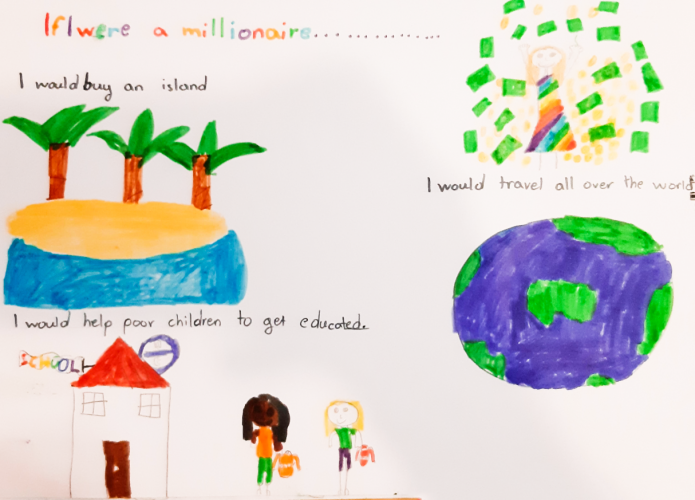 14 Απριλίου 2021Την Τετάρτη 14 Απριλίου στο μάθημα των Αγγλικών, τα παιδιά μας της Ε΄ τάξης απέδειξαν ότι η εκμάθηση και η εμπέδωση της γραμματικής μπορεί να γίνει πραγματικά απολαυστική! Χρησιμοποιώντας 2nd Conditional, ξεδίπλωσαν τη φαντασία και τη δημιουργικότητά τους και μας αποκάλυψαν τι θα έκαναν αν είχαν υπερδυνάμεις ή αν ήταν... εκατομμυριούχοι. Αλήθεια, what would WE do?
