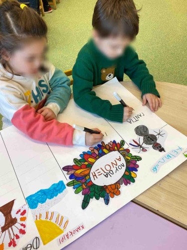 12 Ιανουαρίου 2024Από τη Δευτέρα 8 έως την Παρασκευή 12 Ιανουαρίου τα νηπιάκια μας υποδέχθηκαν το 2024 μέσα από τη θεματική ενότητα «Στην αυλή του νέου χρόνου». Τις εποχές και τους μήνες της καθεμιάς πραγματεύτηκαν οι μαθητές μας μέσα από πλήθος βιωματικών δραστηριοτήτων και κατανόησαν την επιρροή τους στις δραστηριότητες των ανθρώπων και στους βιορυθμούς των ζώων. Επίσης έμαθαν να προσδιορίζουν απλές έννοιες που αφορούν τον χρόνο και χρησιμοποίησαν εργαλεία για να τον μετρήσουν, δημιούργησαν στο μπλοκ ζωγραφικής με την τεχνική της χαρακτικής έναν πίνακα αναφοράς για τις τέσσερις εποχές, επινόησαν αυτοσχέδιες ιστορίες και υποδύθηκαν τους δώδεκα μήνες. Τέλος, εξέφρασαν τις επιθυμίες και τους στόχους τους για τη νέα χρονιά. Αρχή του νέου χρόνου και… όλοι περάσαμε όμορφα!