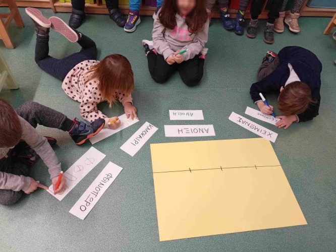 12 Ιανουαρίου 2024Από τη Δευτέρα 8 έως την Παρασκευή 12 Ιανουαρίου τα προνηπιάκια μας καλωσόρισαν τη νέα χρονιά μέσα από τη θεματική ενότητα «Καινούριος χρόνος έφτασε με ελπίδα και χαρές». Με κέφι ξεκίνησαν ένα ταξίδι παρέα με τις εποχές και τους μήνες μέσα από διασκεδαστικά παιχνίδια και δραστηριότητες. Μάζεψαν πόντους προσπαθώντας να στοχεύουν στις χιονονιφάδες, μεταμορφώθηκαν σε ζωάκια που πέφτουν σε χειμερία νάρκη, δημιούργησαν τη χρονογραμμή της τάξης σημειώνοντας σε αυτήν τα πιο σημαντικά γεγονότα της χρονιάς και κατασκεύασαν το ημερολόγιο του 2024 από ξύλο και πηλό. Η εβδομάδα ολοκληρώθηκε με την επίσκεψή μας στο θέατρο «Αυλαία» όπου τα παιδιά παρακολούθησαν τη μουσικοθεατρική παράσταση «Γκρούφαλο».