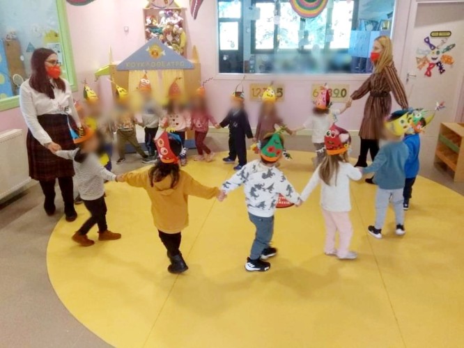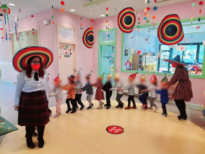 04 Μαρτίου 2022Τα μικρά μας του Παιδικού Σταθμού μας «Πρότυπα 2-4» γιόρτασαν στο Σχολείο τους τις Απόκριες! Έφτιαξαν αποκριάτικα καπελάκια, χόρεψαν φορώντας τα στη σάλα, το κάθε τμήμα ξεχωριστά, και στο τέλος, έβαλαν τα σομπρέρο τους και έγιναν μεξικανοί!