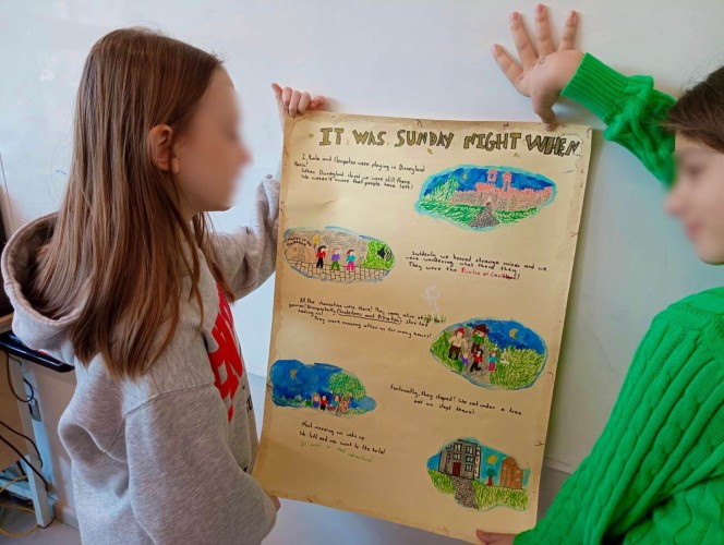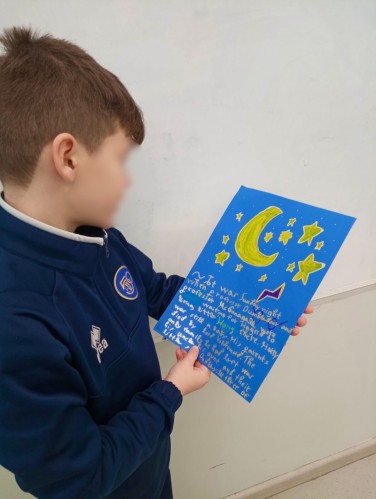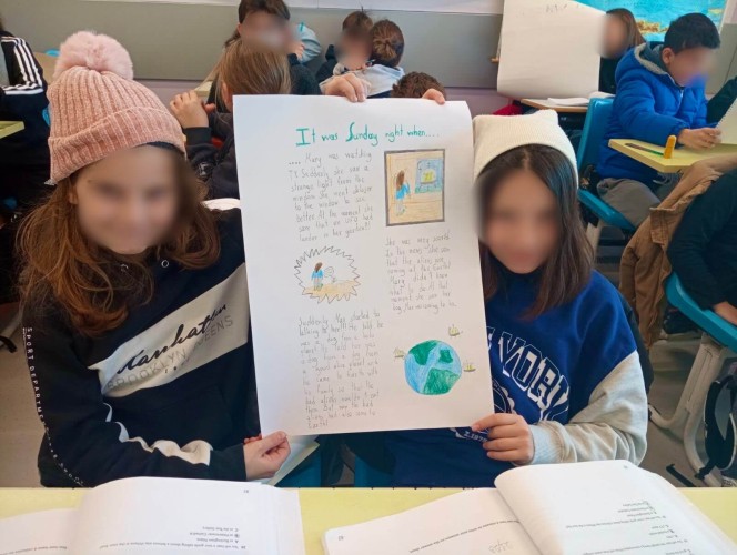 Τα παιδιά της Ε΄τάξης του Δημοτικού μας δημιούργησαν στο μάθημα των Αγγλικών τις δικές τους συναρπαστικές ιστορίες, εντυπωσιακά και δημιουργικά κολάζ και επιστράτευσαν όλη τους τη φαντασία προκειμένου να εμπεδώσουν τη χρήση των χρόνων Past Simple και Past Continuous. Αντλώντας έμπνευση από την πρόταση “It was Sunday night when…”, διαβάσαμε τις πιο ενδιαφέρουσες ιστορίες!