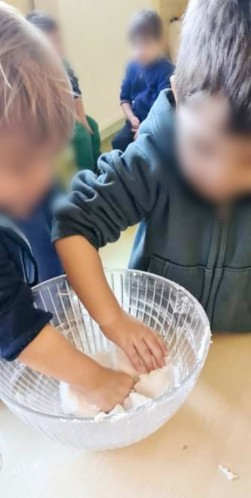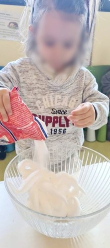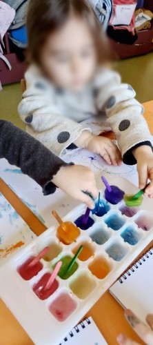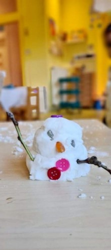 24 Ιανουαρίου 2022Τα μικρά μας του Παιδικού Σταθμού «Πρότυπα 2-4» ολοκλήρωσαν τη θεματική του «Χειμώνα» στην καρδιά αυτής της εποχής. Και μιας και η θερμοκρασία που επικρατεί είναι χαμηλή, η δασκάλα τους σκέφτηκε να την οπτικοποιήσει δίνοντάς της χρώμα και σχήμα. Έτσι, τα προ-προνηπιάκια μας έκαναν τα δικά τους χρωματιστά παγάκια και μάλιστα, ζωγράφισαν μ’ αυτά τα δικά τους αφηρημένα σχεδιάκια. Ωραίος ο χρωματιστός πάγος, αλλά σαν τον χιονάνθρωπο δεν έχει. Τι κάνουμε, όταν σε πολλές περιοχές της χώρας χιονίζει, αλλά εδώ έχει μόνο κρύο; Μα φυσικά, βγάζουμε τα σκεύη μας, παίρνουμε μαγειρική σόδα και αφρό ξυρίσματος και κάνουμε τον δικό μας χιονάνθρωπο στον πάγκο εργασίας μας. Είτε έτσι είτε αλλιώς, εμείς χιονάνθρωπο φτιάξαμε και είχε πολύ πλάκα!