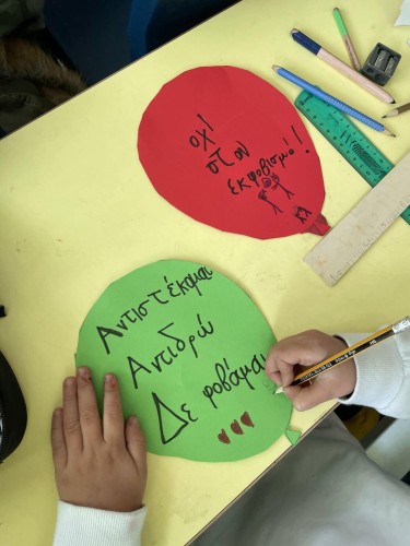 - Συζήτησαν με τις δασκάλες τους τους λόγους που δεν πρέπει να εκφοβίζουν κανέναν και τις επιπτώσεις που μπορεί να έχει μια τέτοια συμπεριφορά σ’ έναν συνάνθρωπό τους.