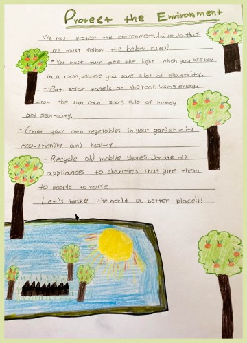 22 Φεβρουαρίου 2021Πώς μπορούμε με απλούς τρόπους να προστατεύσουμε το περιβάλλον; Αυτό αναρωτήθηκαν οι μαθητές της Δ΄ τάξης στο μάθημα των Αγγλικών. Τη Δευτέρα 22 Φεβρουαρίου αφού μελέτησαν, κουβέντιασαν και προβληματίστηκαν σχετικά με διάφορες περιβαλλοντικές παρεμβάσεις, σχεδίασαν πολύχρωμες αφίσες με προτάσεις-συμβουλές για έναν πράσινο κόσμο.