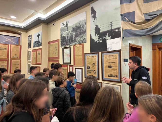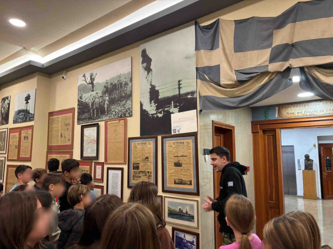 16 Οκτωβρίου 2025Την Τρίτη 14 και την Τετάρτη 15 Οκτωβρίου οι μαθητές μας της Στ΄ τάξης επισκέφτηκαν το Πολεμικό Μουσείο Θεσσαλονίκης και συμμετείχαν στο βιωματικό εκπαιδευτικό πρόγραμμα με τίτλο «Μαθαίνοντας για την ειρήνη, τα ανθρώπινα δικαιώματα και την κοινωνική αλλαγή». Το «ταξίδι» στον χρόνο ξεκίνησε και τα παιδιά περιηγήθηκαν στις αίθουσες, όπου είδαν μοναδικά εκθέματα και ανακάλυψαν πτυχές της νεότερης ελληνικής ιστορίας μέσα από αυθεντικά τεκμήρια και αφηγήσεις. Οι μαθητές εξέφρασαν τις σκέψεις τους για τις αξίες της συνεργασίας, της ειρήνης και του σεβασμού και αντιλήφθηκαν πως η γνώση της ιστορίας μάς βοηθάει να οικοδομήσουμε ένα καλύτερο και πιο ειρηνικό μέλλον. Η δράση πραγματοποιήθηκε στο πλαίσιο του μαθήματος της Ιστορίας και των Εργαστηρίων Δεξιοτήτων, στον θεματικό άξονα για τα ανθρώπινα δικαιώματα, με στόχο την καλλιέργεια της ενσυναίσθησης, της υπευθυνότητας και της δημοκρατικής συνείδησης.