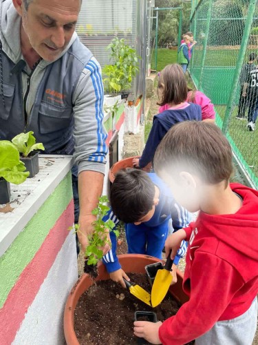 11 Μαΐου 2023Στο πλαίσιο των αειφορικων δράσεων του σχολείου μας, τα παιδιά της Α τάξης έμαθαν για τη διαδικασία της κομποστοποίησης που πραγματοποιείται στην αυλή του σχολείου μας κι τη χρησιμοτητά της. Έπειτα, φύτεψαν διαφορα φυτά στο θερμοκήπιο της αυλης μας ακολουθώντας τις οδηγίες του γεωπόνου.