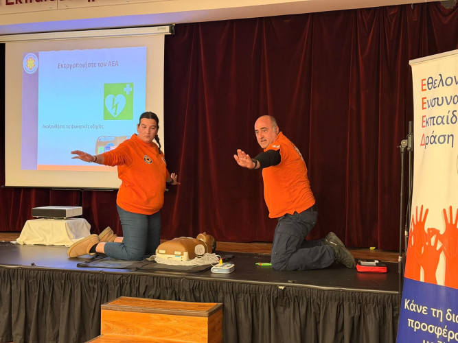 30 Μαρτίου 2026Στο πλαίσιο των Απογευματινών Συναντήσεων γονέων «Μεγαλώνοντας μαζί με τα παιδιά μας» πραγματοποιήθηκαν στο Σχολείο μας δύο ενημερωτικά σεμινάρια για τις πρώτες βοήθειες με τίτλο «Κι αν σου τύχει;». Στο α΄μέρος ο Αθανάσιος Κοτσαμπασίδης, Διασώστης-Πλήρωμα ασθενοφόρου, Εκπαιδευτής Πρώτων Βοηθειών, Υπεύθυνος Εκπαίδευσης Πρώτων Βοηθειών Ελληνικής Ένωσης Έρευνας και Διάσωσης ανέλυσε τα «βήματα» που μπορούμε να ακολουθήσουμε για να βοηθήσουμε έναν συνάνθρωπό μας μέχρι να έρθει ιατρική βοήθεια. Με διαδραστικό τρόπο εξήγησε πώς κάνουμε ΚΑΡΠΑ και έδειξε ποια είναι η θέση ανάνηψης σε περίπτωση ατυχήματος ή ξαφνικής ασθένειας. Στο β΄μέρος ενημέρωσε για το πώς αντιμετωπίζουμε προβλήματα όπως: απώλεια αισθήσεων, πνιγμονή, αιμοραγίες-ρινοραγία, εγκαύματα, τσιμπήματα, έμφραγμα, εγκεφαλικό και επιληπτική κρίση.
