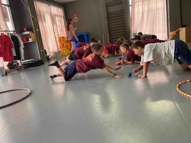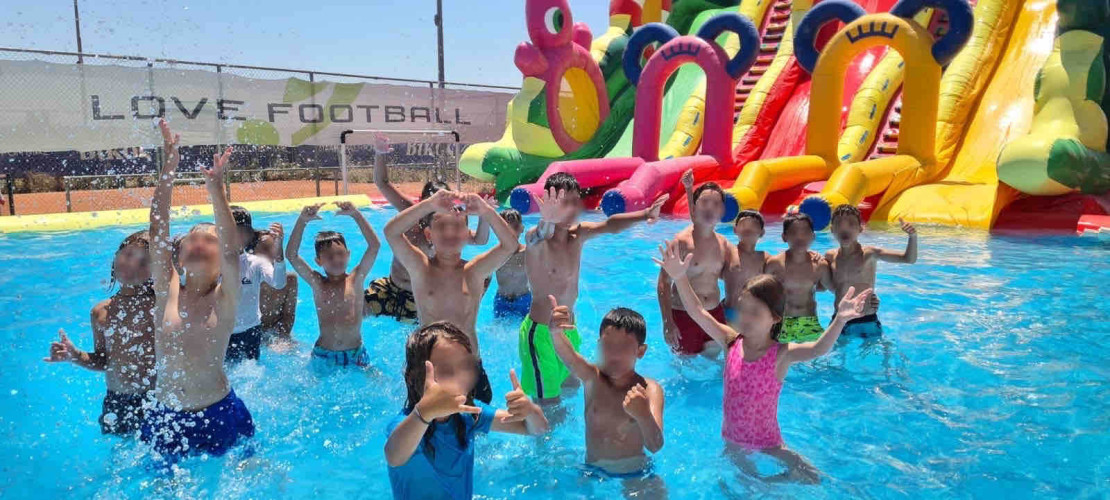 08 Ιουλίου 2025Οι μικροί αθλητές συνέχισαν να σκοράρουν. Την Τρίτη 8 Ιουλίου τα παιδιά μας, αφού «ζεστάθηκαν» με την πρωινή προπόνηση μέσα από ομαδικά συναγωνιστικά παιχνίδια, εξέλιξαν την τεχνική τους με στόχο την εστία και στη συνέχεια έδωσαν το τελικό ματς. Έπειτα, ήρθε η ώρα να δοκιμάσουν κάτι διαφορετικό και εκτός γηπέδου. Έτσι, έμαθαν βασικές κινήσεις ισορροπίας, έκαναν εναέριες ασκήσεις και πειραματίστηκαν με την ικανότητά τους στην ευλυγισία μέσα από ακροβατικές δραστηριότητες. Η ημέρα έκλεισε με ατελείωτες βουτιές στο Love Waterpark!