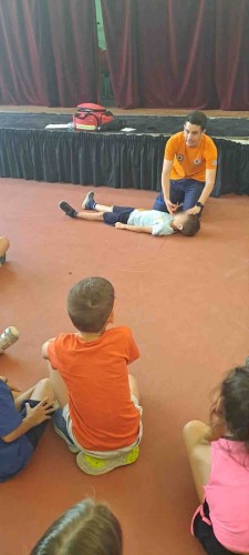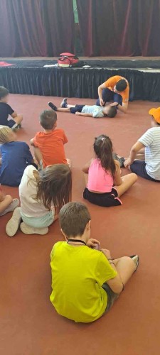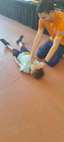21 Ιουνίου 2024Tην Πέμπτη 20 Ιουνίου εκπρόσωπος της Ελληνικής Ένωσης Έρευνας και Διάσωσης Θεσσαλονίκης ενημέρωσε τους rangers για τους κανόνες πρώτων βοηθειών. Οι μικροί μας διασώστες με μεγάλη προσήλωση και ενδιαφέρον παρακολούθησαν το εκπαιδευτικό διαδραστικό πρόγραμμα και έμαθαν βιωματικά τις τακτικές που πρέπει να ακολουθήσουν σε περίπτωση που έχουν δίπλα τους ένα άτομο με θερμοπληξία ή ρινορραγία. Οι κατασκηνωτές μας άκουσαν αρχικά το θεωρητικό μέρος για την έγκαιρη ανταπόκριση σε επείγοντα περιστατικά και στη συνέχεια εκπαιδεύτηκαν στην Καρδιοπνευμονική Αναζωογόνηση (ΚΑΡΠΑ) ως άτομα που χρειάζονται βοήθεια.