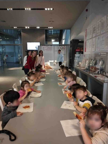 23 Ιανουαρίου 2025Τι πιο σημαντικό από το να φροντίζουμε την υγεία και τη διατροφή μας; Οι μαθητές μας του Παιδικού Σταθμού «Πρότυπα 2-4» στο πλαίσιο της θεματικής ενότητας «Σωστή διατροφή για να είμαστε γεροί» επισκέφθηκαν το Ολυμπιακό Μουσείο και έμαθαν με διασκεδαστικό τρόπο να επιλέγουν θρεπτικά και ισορροπημένα γεύματα. Στο διαδραστικό παιχνίδι που συμμετείχαν ομαδοποίησαν τις τροφές σε δύο κατηγορίες: ανθυγιεινές-υγιεινές και έπειτα γέμισαν την πυραμίδα με αυτές. Στη συνέχεια ενημερώθηκαν μέσω εποπτικού υλικού για τα οφέλη της σωστής διατροφής και η πιο συναρπαστική στιγμή ήρθε όταν άρχισαν τα «παιχνιδομαγειρέματα». Τα προ-προνηπιάκια μας παρακολούθησαν το εργαστήριο μαγειρικής και ακολουθώντας πιστά τις οδηγίες του σεφ, με τη βοήθεια των νηπιαγωγών τους, παρασκεύσαν τα πιο υγιεινά και νόστιμα πιτσάκια.