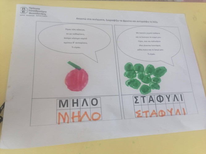 16 Φεβρουαρίου 2024Στο πλαίσιο των Εργαστηρίων Δεξιοτήτων, οι μαθητές μας της Α΄ τάξης ήρθαν σε επαφή με την υγιεινή διατροφή μέσα από μία πληθώρα δραστηριοτήτων. Γνώρισαν τα είδη των τροφών και πληροφορήθηκαν για τα θρεπτικά συστατικά που μας δίνουν. Στη συνέχεια, κάθε παιδί έφτιαξε το πιάτο της υγιεινής διατροφής και κατανόησε καλύτερα την αξία ενός ισορροπημένου γεύματος ενώ με την τεχνική του κολλάζ όλοι μαζί έφτιαξαν «την πυραμίδα της υγιεινής διατροφής» και έλυσαν αινίγματα που σχετίζονται με τα φρούτα. Ακόμη, τα παιδιά μας δημιούργησαν «το φανάρι των υγιεινών και των ανθυγιεινών τροφών» και με παιγνιώδη τρόπο συνειδητοποίησαν ποιες τροφές είναι καλό να καταναλώνουν πιο συχνά και ποιες όχι. Από αυτή την ενότητα δε θα μπορούσε να λείπει και η σωστή υγιεινή των δοντιών. Έτσι, αφού οι μαθητές μας παρακολούθησαν σχετικό οπτικοακουστικό υλικό, φιλοτέχνησαν σε ομάδες εικαστικές δημιουργίες με τις τροφές που μας κάνουν καλό και με εκείνες που βλάπτουν τα δόντια μας. Η «διαδρομή» στην ενότητα της διατροφής έκλεισε με το παραμύθι «Ο Μάκης Ενζυμάκης και η Μάχη στο Στομάχι» της Anna Russelmann.