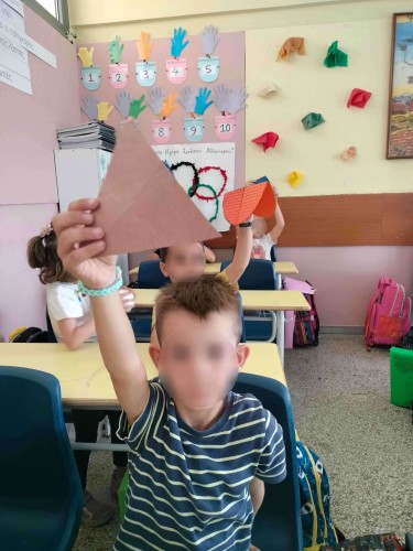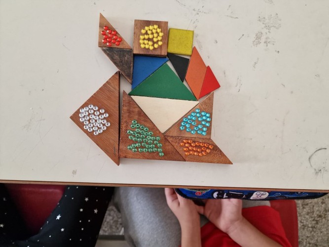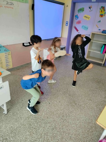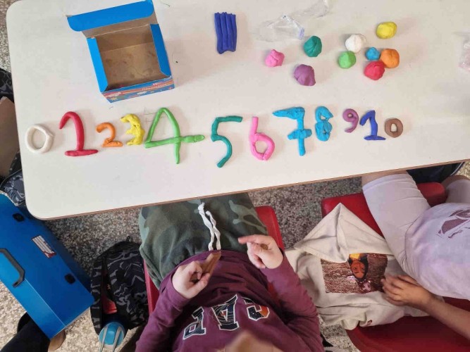 04 Οκτωβρίου 2024Τι πιο όμορφο να μαθαίνουμε παίζοντας και να παίζουμε μαθαίνοντας; Χρώματα, σχήματα, αριθμοί και μαθηματικά συνάντησαν την τέχνη. Οι μαθητές μας της Α΄ τάξης συνεργάστηκαν σε δυάδες και με πολύχρωμες πλαστελίνες σχημάτισαν ομοιόμορφα τους αριθμούς από το 1 έως το 10 εξασκώντας παράλληλα τη λεπτή τους κινητικότητα. Έμαθαν καλύτερα τα γεωμετρικά σχήματα και με αυτά «κατασκεύσαν» σε ομάδες ένα ιδιαίτερο «γλυπτό» το οποίο παρουσίασαν στους συμμαθητές τους. Πειραματίστηκαν παίζοντας με το tangram και έπειτα άφησαν τη φαντασία τους ελεύθερη δημιουργώντας με το σώμα τους πολλά σχήματα.