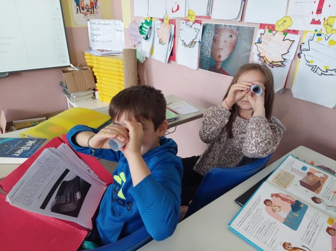 03 Απριλίου 2024Την ημέρα αυτή στη Γ΄ τάξη διαβάσαμε το μήνυμα της φετινής αφίσας από τη συγγραφέα Eiko Kadono και το αποτυπώσαμε σε ζωγραφιές. Οι μαθητές και οι μαθήτριές μας έφεραν το αγαπημένο τους βιβλίο στην τάξη, διάβασαν ένα απόσπασμα που διάλεξαν και παρουσίασαν μια εργασία για αυτό, που επιλέξαμε από τις δράσεις της «γωνιάς της φιλαναγνωσίας της τάξης». Παρακολουθήσαμε το βίντεο "Its a booκ!" και συζητήσαμε για τη γοητεία του έντυπου βιβλίου σε σχέση με τον υπολογιστή. Ξεκινήσαμε με μια φράση και παρασυρθήκαμε από μια θύελλα ιδεών (μέθοδος της ιδεοθύελλας) συνθέτοντας μια σπονδυλωτή φανταστική ιστορία. Έπειτα η κάθε υποομάδα παρουσίασε την ιστορία της στην ολομέλεια της τάξης.