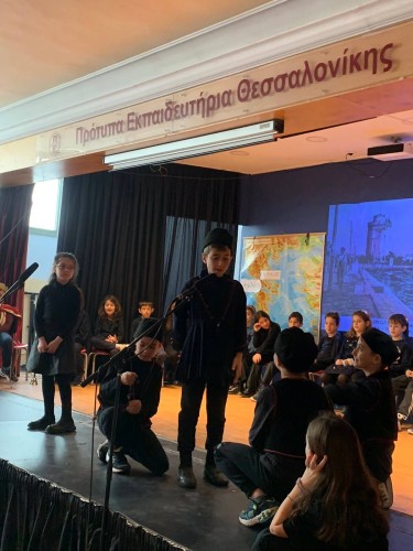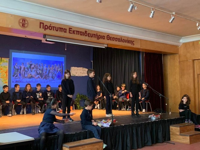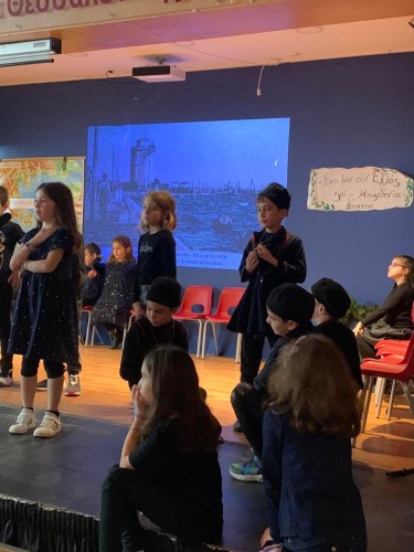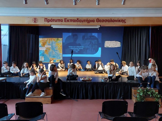 13 Οκτωβρίου 2023Την Παρασκευή 13 Οκτωβρίου οι μαθητές μας της Γ΄ τάξης τίμησαν μαζί με τα υπόλοιπα παιδιά του Σχολείου μας τη μνήμη του Μακεδονικού Αγώνα και των αγωνιστών που συνέβαλαν στην απελευθέρωση της ένδοξης Μακεδονίας μας. Τα παιδιά μας μέσα από θεατρικά δρώμενα, μουσική και χορό παρουσίασαν την ιστορία της Μακεδονίας. Ξεκινώντας από τη γέννηση του μακεδονικού κράτους και τον Μέγα Αλέξανδρο, ανέδειξαν τη συμβολή των Μακεδόνων στην ελληνική επανάσταση και τον τουρκικό ζυγό, απέδωσαν θεατρικά τον αγώνα του Παύλου Μελά και των Μακεδονομάχων και έκλεισαν τη συγκινητική παρουσίασή τους με τους Βαλκανικούς αγώνες το 1912-13 και την απελευθέρωση της Μακεδονίας.