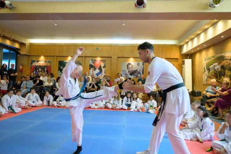 04 Ιουλίου 2025Με αφοσίωση στον στόχο τους και συστηματική προπόνηση οι μαθητές μας του Νηπιαγωγείου και του Δημοτικού του τμήματος Tae-Kwon-Do διέπρεψαν στις εξετάσεις ζωνών. Οι αθλητές μας με πειθαρχία και αυτοέλεγχο συγκεντρώθηκαν στις ασκήσεις και ολοκλήρωσαν με επιτυχία το αγωνιστικό κομμάτι κατακτώντας την επόμενη ζώνη. Μέσα από μια απαιτητική διαδικασία οι ασκούμενοι έμαθαν για τη φιλοσοφία του αθλήματος, καλλιέργησαν την αυτοσυγκράτηση και μυήθηκαν στη φιλοσοφία αυτής της πολεμικής τέχνης. Η αδιάκοπη προσπάθεια των παιδιών μας ανταμείφθηκε με το πιο θερμό χειροκρότημα του κοινού.