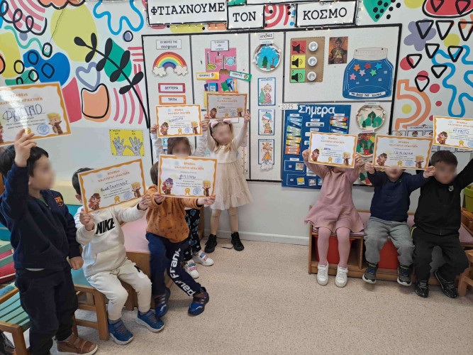 14 Φεβρουαρίου 2025Από τη Δευτέρα 10 έως την Παρασκευή 14 Φεβρουαρίου δόθηκε στα προνηπιάκια μας μια δύσκολη αποστολή: να «μετα-μορφωθούν» σε πράκτορες του διαδικτύου. Γνώρισαν από κοντά τον Φοίβο, τον διαδικτυακό ποντικό, ο οποίος τους ανέθεσε τις αποστολές τους. Στην αρχή τα παιδιά δημιούργησαν με ψηφιακά εργαλεία έναν διαδικτυακό πράκτορα που τους βοήθησε να συλλέξουν πληροφορίες για τους κανόνες σωστής συμπεριφοράς στο διαδίκτυο και δημιούργησαν αφίσα με αυτούς. Στο μάθημα της Πληροφορικής γνώρισαν τον Smartie, που τους έδωσε χρήσιμες συμβουλές για την ασφαλή πλοήγηση στο ίντερνετ και στην αυλή του Σχολείου μας έπαιξαν μπόουλινγκ εξολοθρεύοντας διαδικτυακούς κινδύνους. Επίσης, ανέλαβαν ρόλους, συνεργάστηκαν και δραματοποίησαν το παραμύθι «Ο Π@πάκης σώζει την κατάσταση» και κατασκεύασαν το επιτραπέζιο παιχνίδι «Πράκτορες στο διαδίκτυο», για να πάρουν μέρος με αυτό σε μαθητικό διαγωνισμό. Μετά τις τόσες επιτυχημένες αποστολές βραβεύτηκαν ως «Οι Καλύτεροι Πράκτορες του Διαδικτύου»!